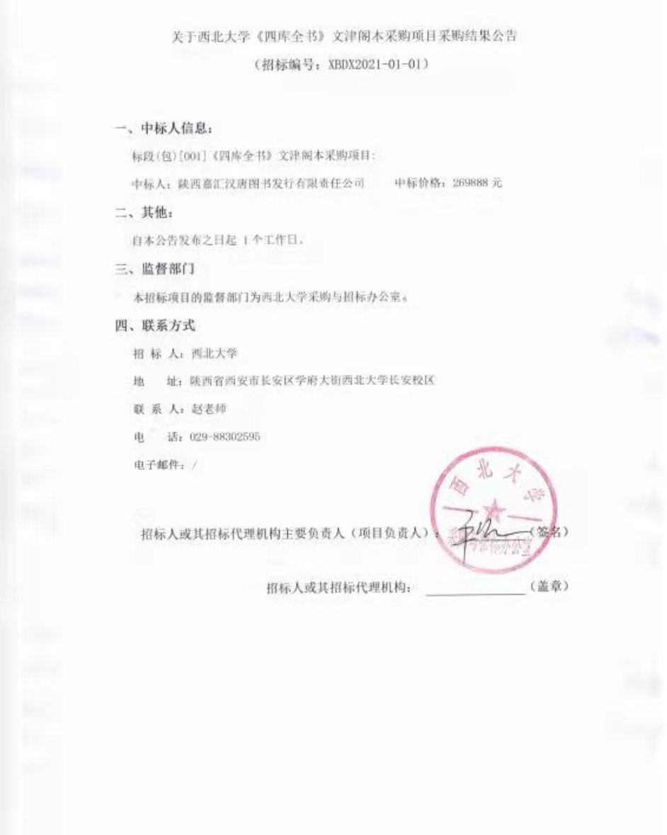 关于广发体育《四库全书》文津阁本采购项目成交结果公告