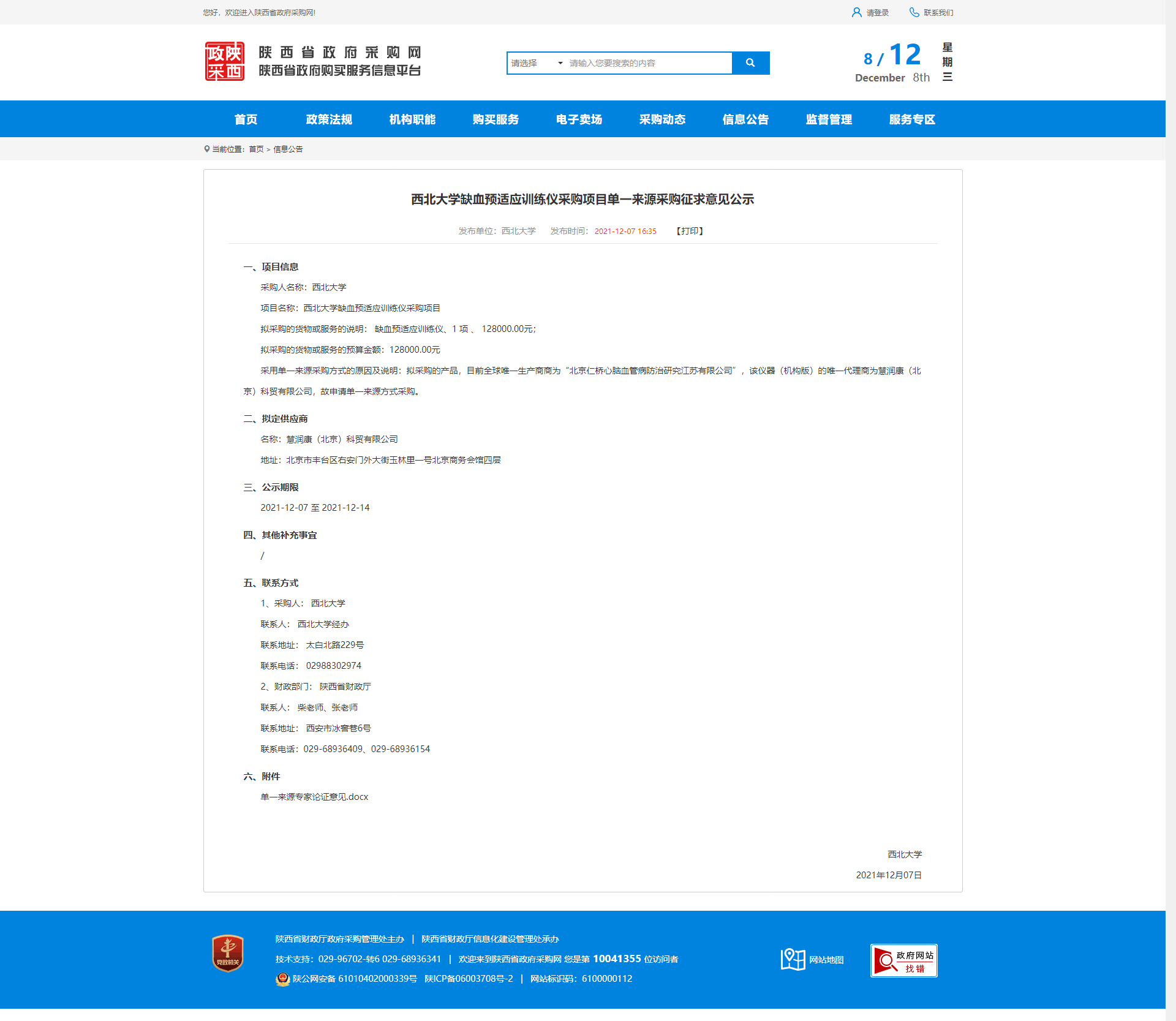 广发体育缺血预适应训练仪采购项目单一来源采购征求意见公示 作者: 编辑:薛利娟 时间:2021-12-08 原公告链接:http://www.ccgp-shaanxi.gov.cn/notice/noticeDetail.do?noticeguid=8a85be347d6a75c8017d9407fc0b61e6