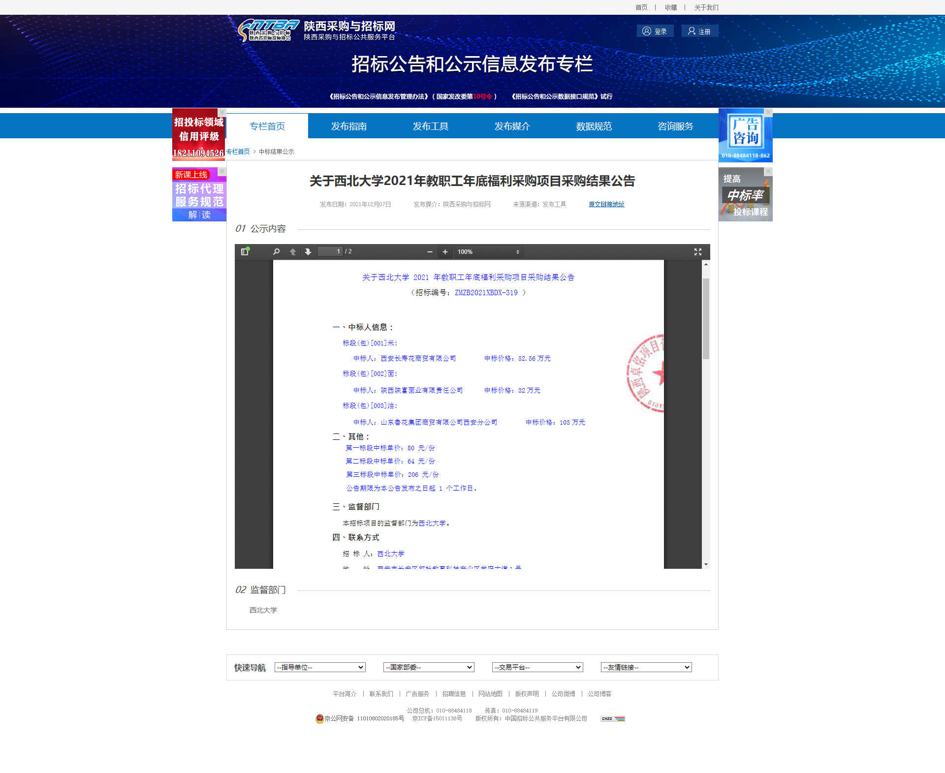 关于广发体育2021年教职工年底福利采购项目采购结果公告 作者: 编辑:薛利娟 时间:2021-12-08 原公告链接:http://bulletin.sntba.com/resultBulletin/2021-12-07/372936.html