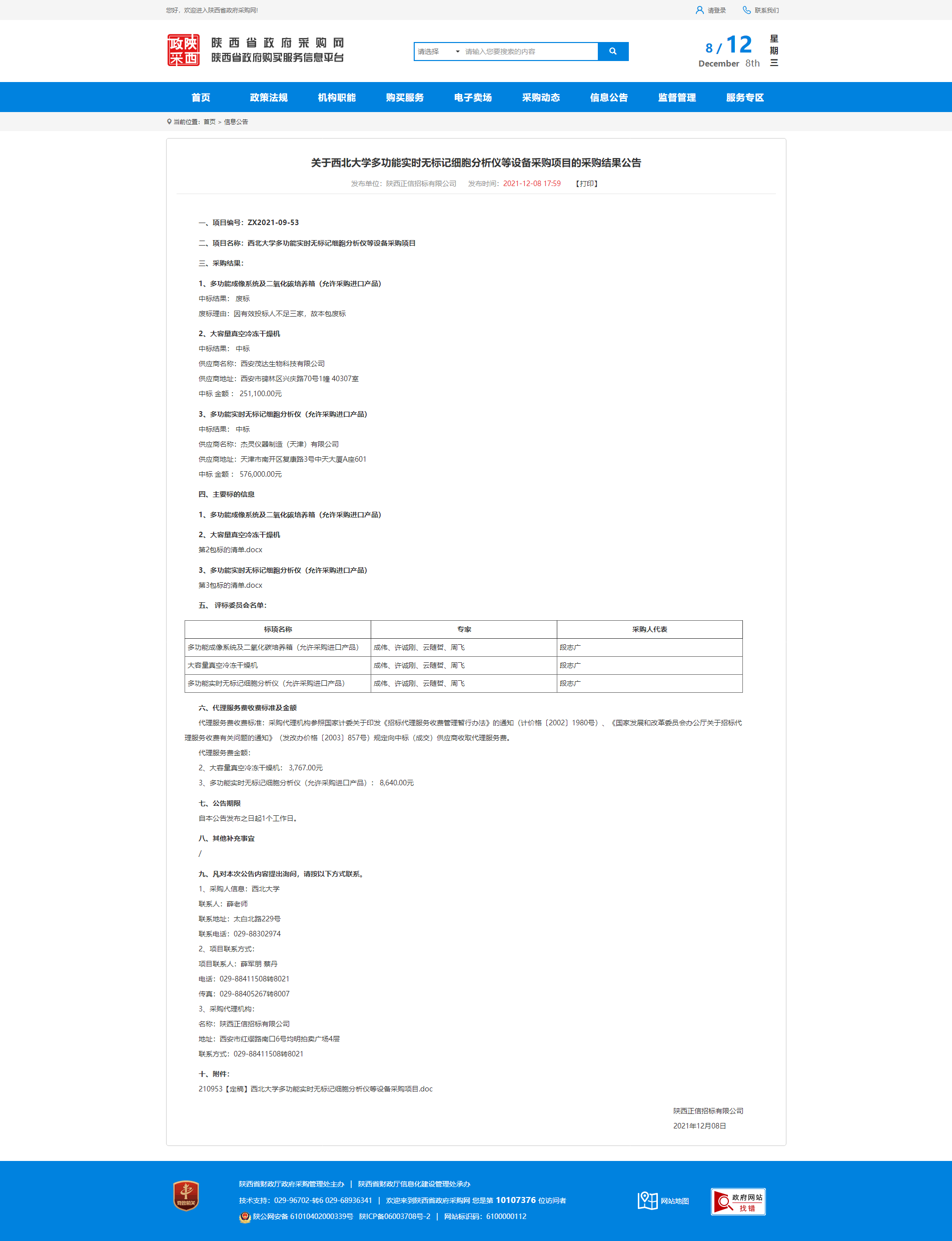 关于广发体育多功能实时无标记细胞分析仪等设备采购项目的采购结果公告