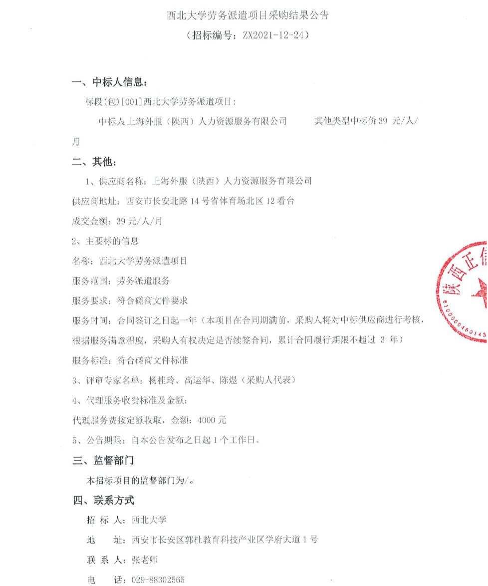 关于广发体育劳务派遣项目采购结果公告