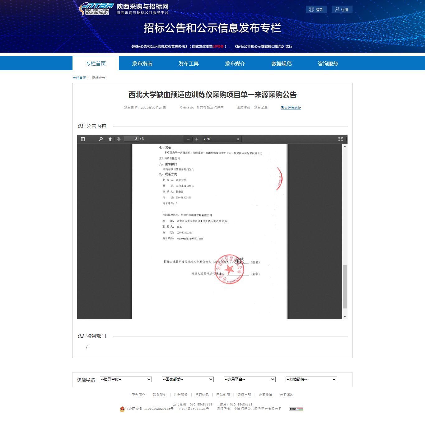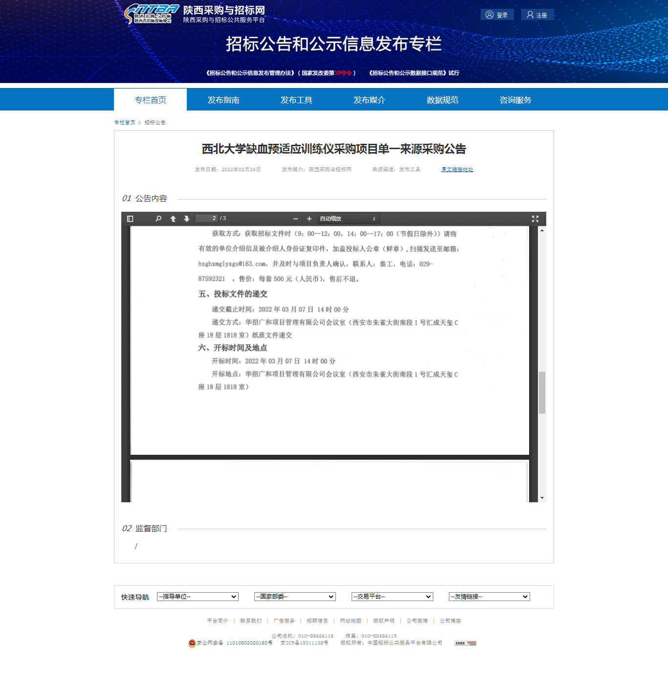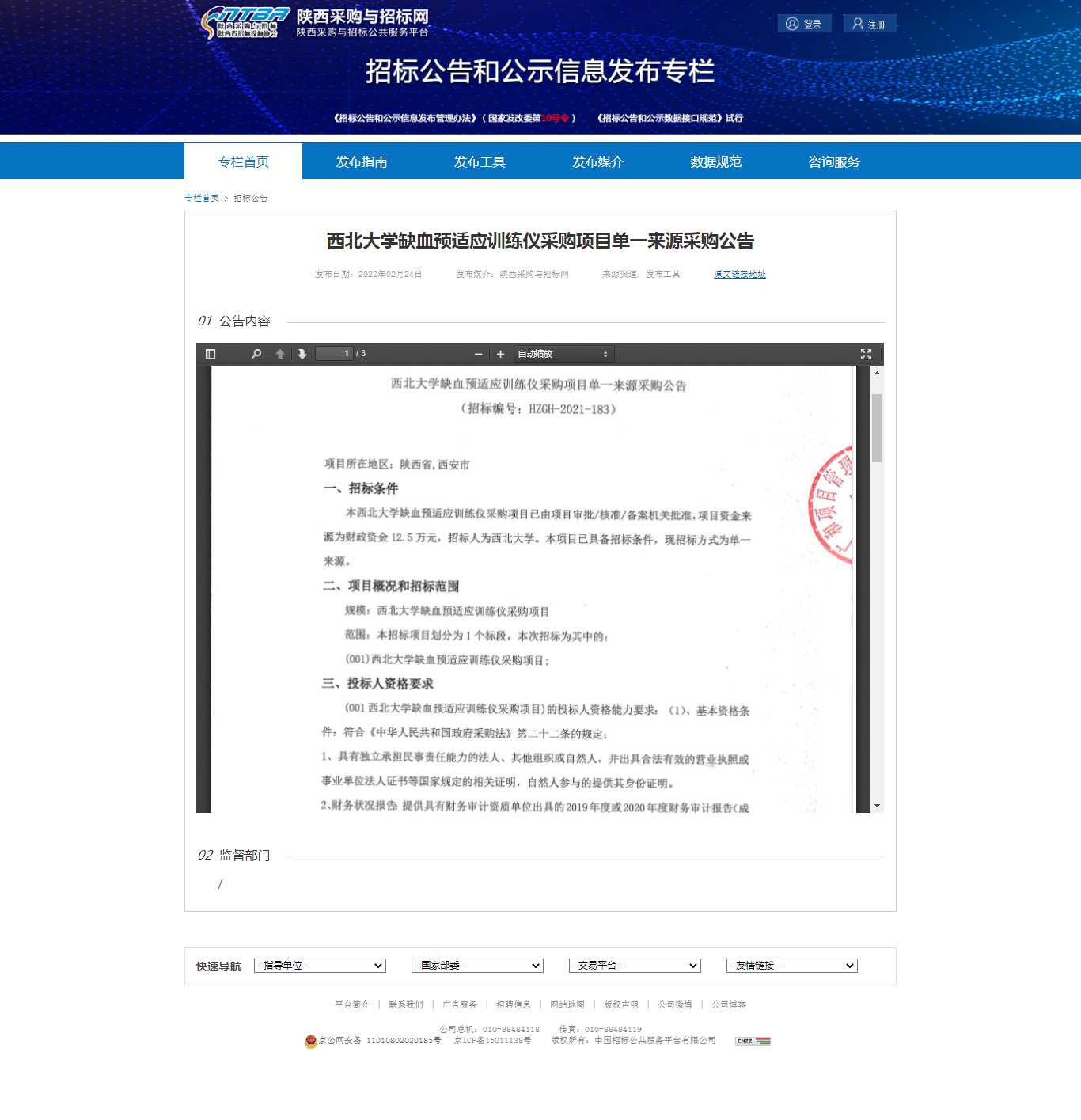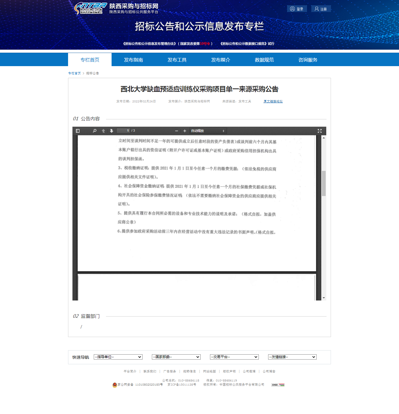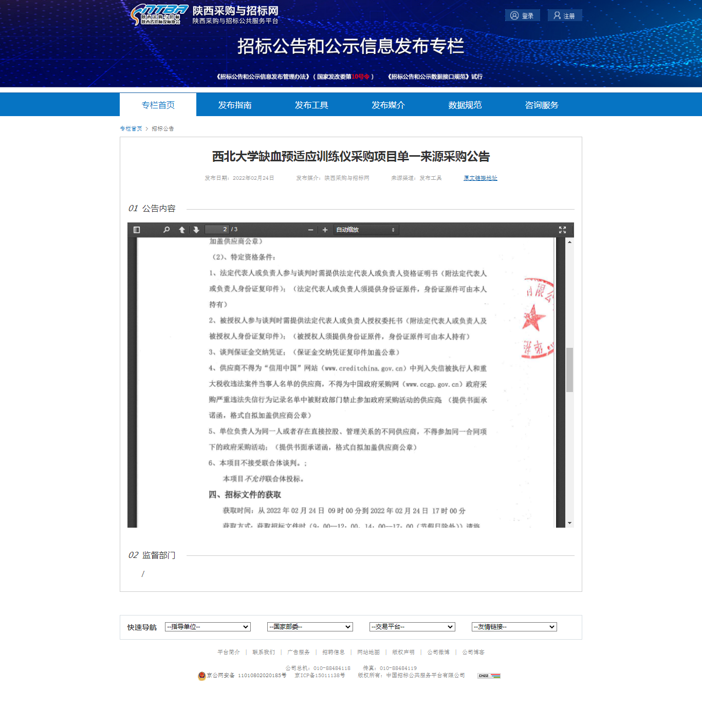 广发体育缺血预适应训练仪采购项目单一来源采购公告 作者: 编辑:薛利娟 时间:2022-02-24 原公告链接:http://bulletin.sntba.com/biddingBulletin/2022-02-24/392495.html