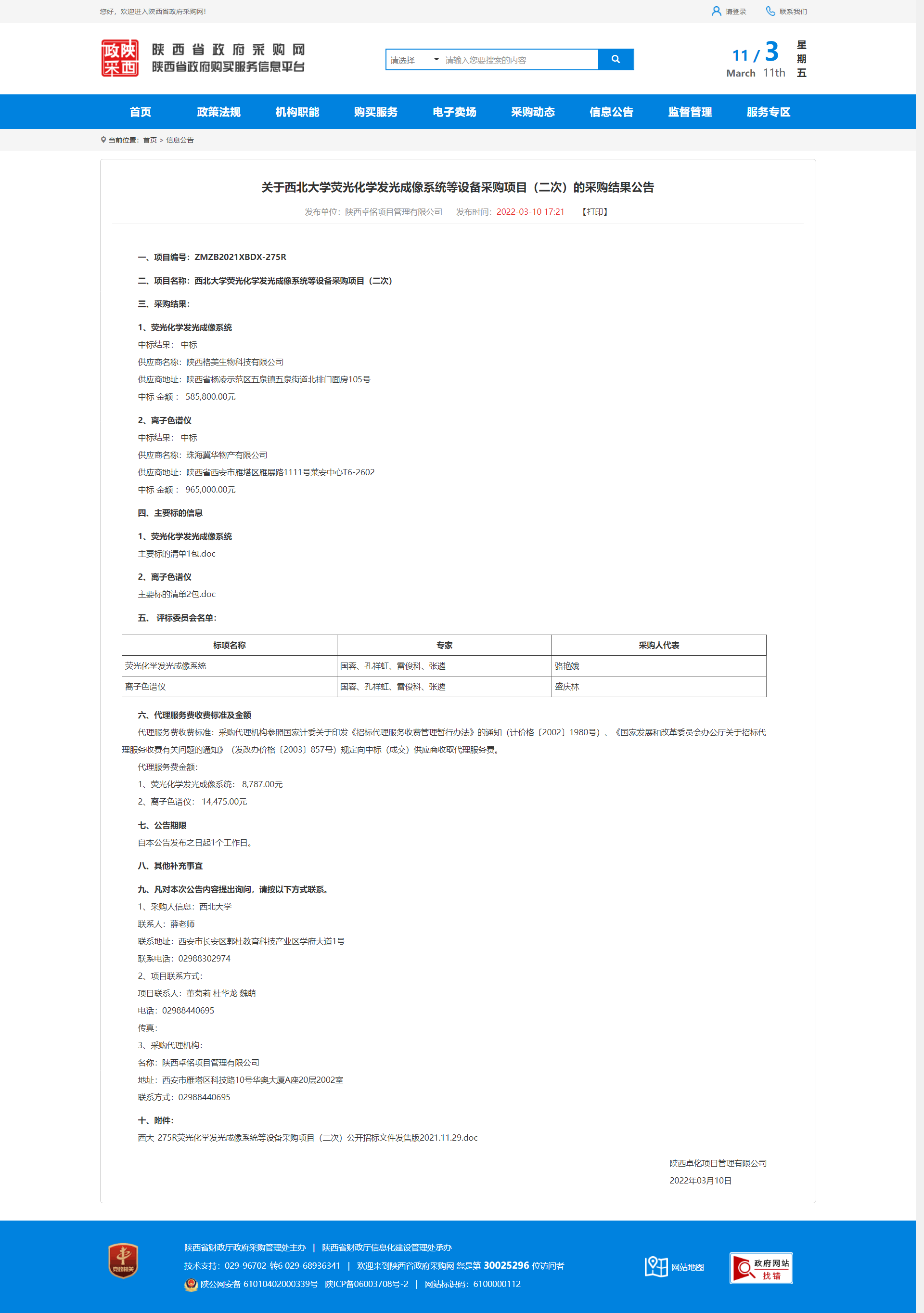 关于广发体育荧光化学发光成像系统等设备采购项目(二次)的采购结果公告 作者: 编辑:薛利娟 时间:2022-03-11 原公告链接:http://www.ccgp-shaanxi.gov.cn/notice/noticeDetail.do?noticeguid=8a85be327f3fe30d017f7320415845ab