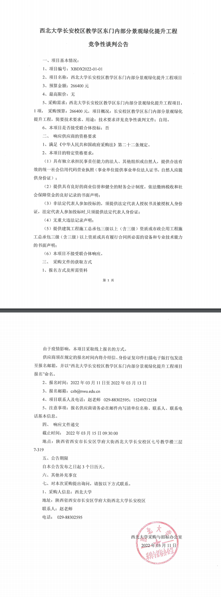 广发体育长安校区教学区东门内部分景观绿化提升工程竞争性谈判公告