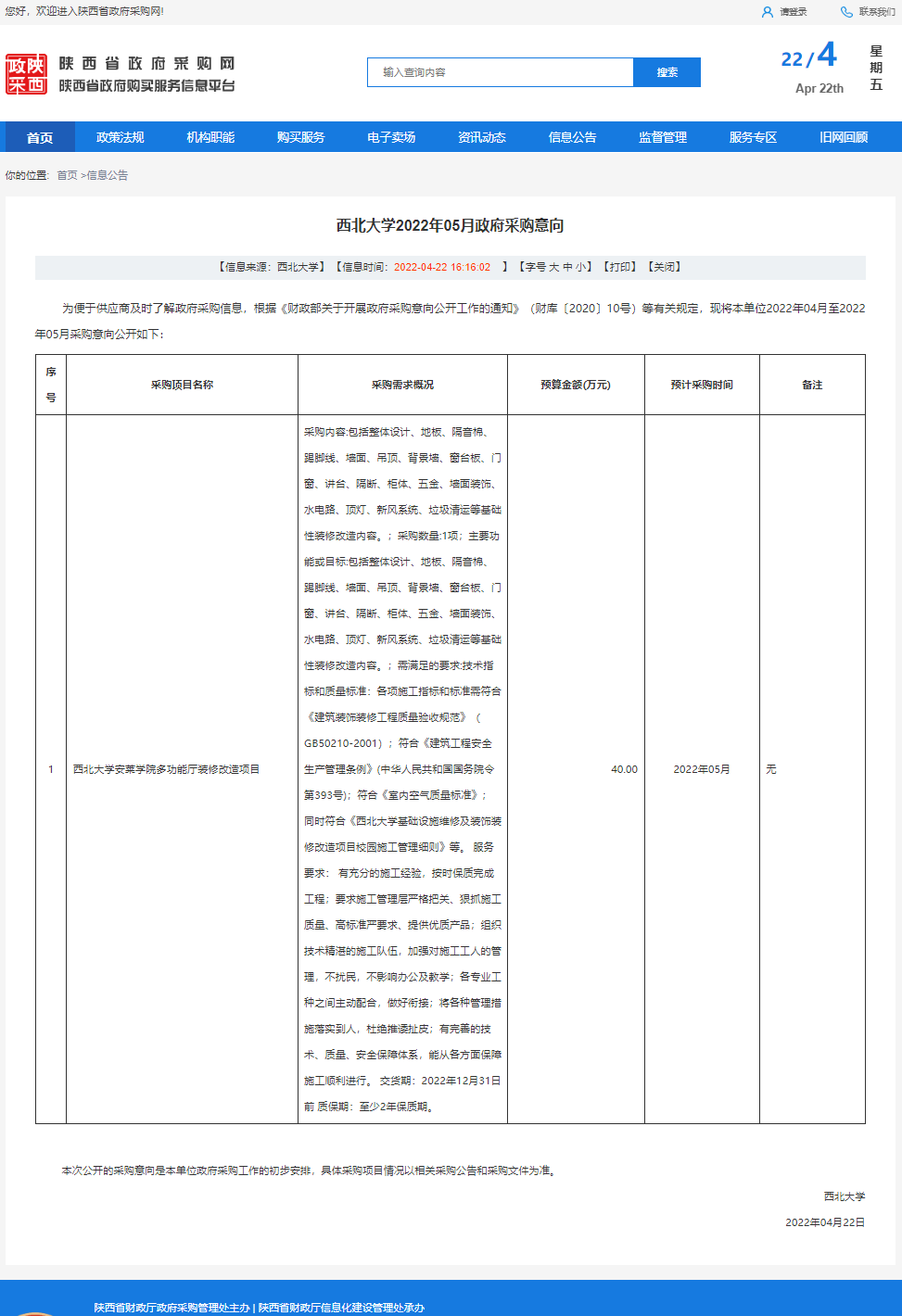 广发体育2022年05月政府采购意向