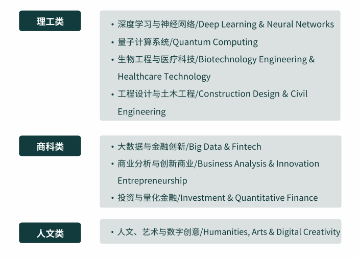 项目鼓励参与者进行跨学科学习,本期项目将开放8个应用方向供各专业学生选择:
