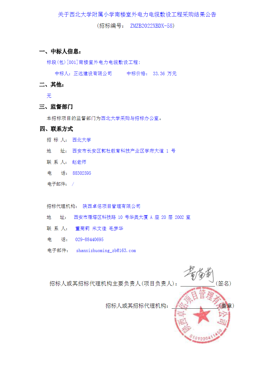 关于广发体育附属小学南楼室外电力电缆敷设工程采购结果公告