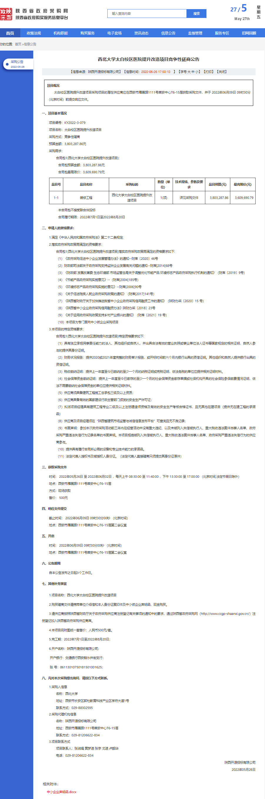 广发体育太白校区医院提升改造项目竞争性磋商公告