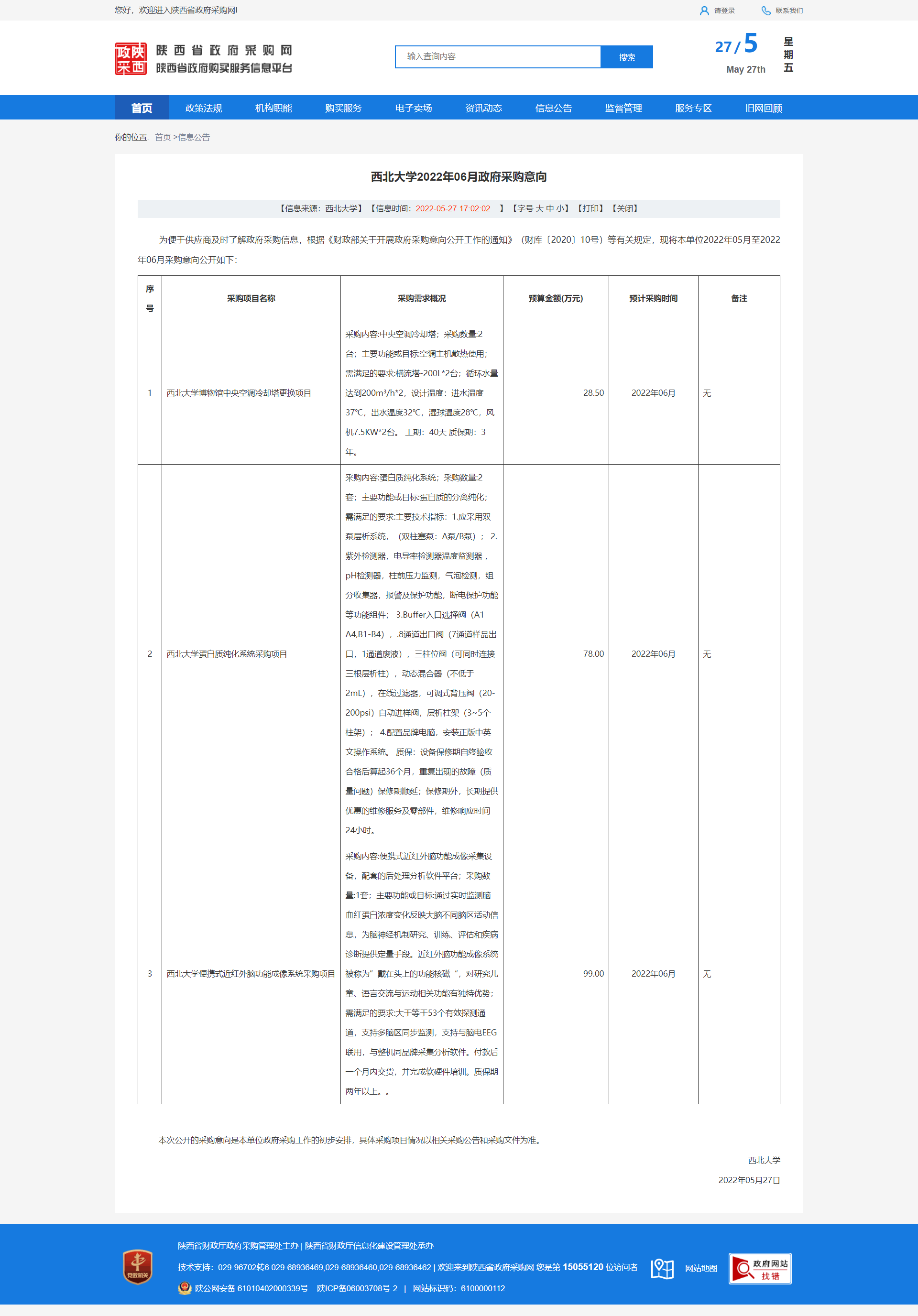 广发体育2022年06月政府采购意向 作者: 编辑:薛利娟 时间:2022-05-27 原公告链接:http://www.ccgp-shaanxi.gov.cn/freecms/site/shaanxi/ggxx/info/2022/8a69c97180f1b0450180f4b864a96477.html?noticeType=59¬iceId=eba9d16a-dd9b-11ec-9a8e-08c0eb20c666