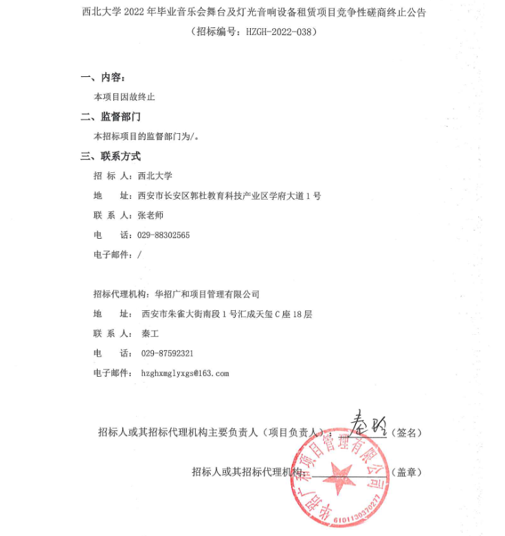关于广发体育2022年毕业音乐会舞台及灯光音响设备租赁项目竞争性磋商终止公告
