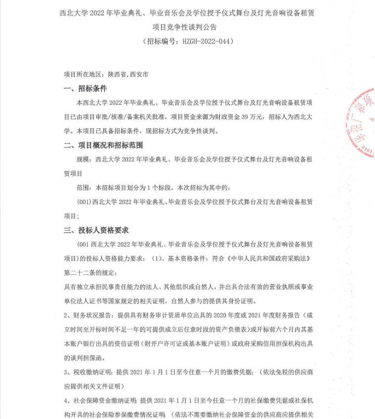 广发体育2022年毕业典礼、毕业音乐会及学位授予仪式舞台及灯光音响设备租赁项目竞争性谈判公告