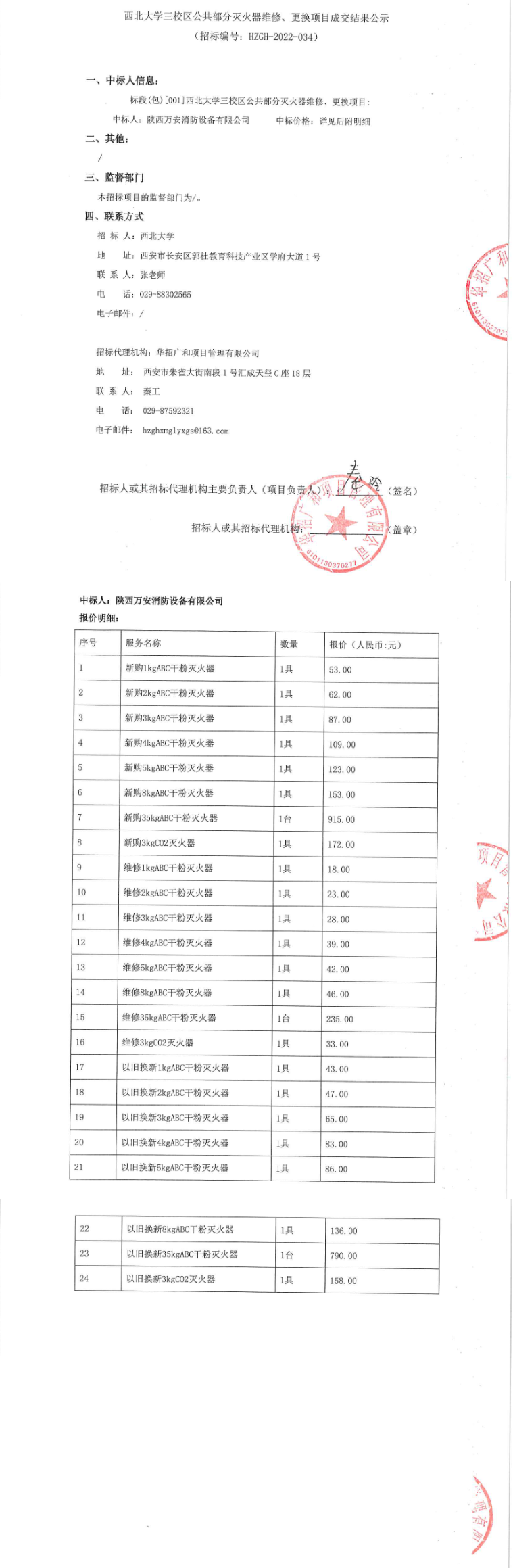 关于广发体育三校区公共部分灭火器维修、更换项目成交结果公示