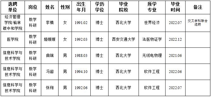 经用人单位及教学督导考核、学校研究,拟同意选聘下列人员来校工作,其聘任关系为A类人事代理。本着公平、公正、公开的原则,现将拟选聘人员基本情况公示如下: