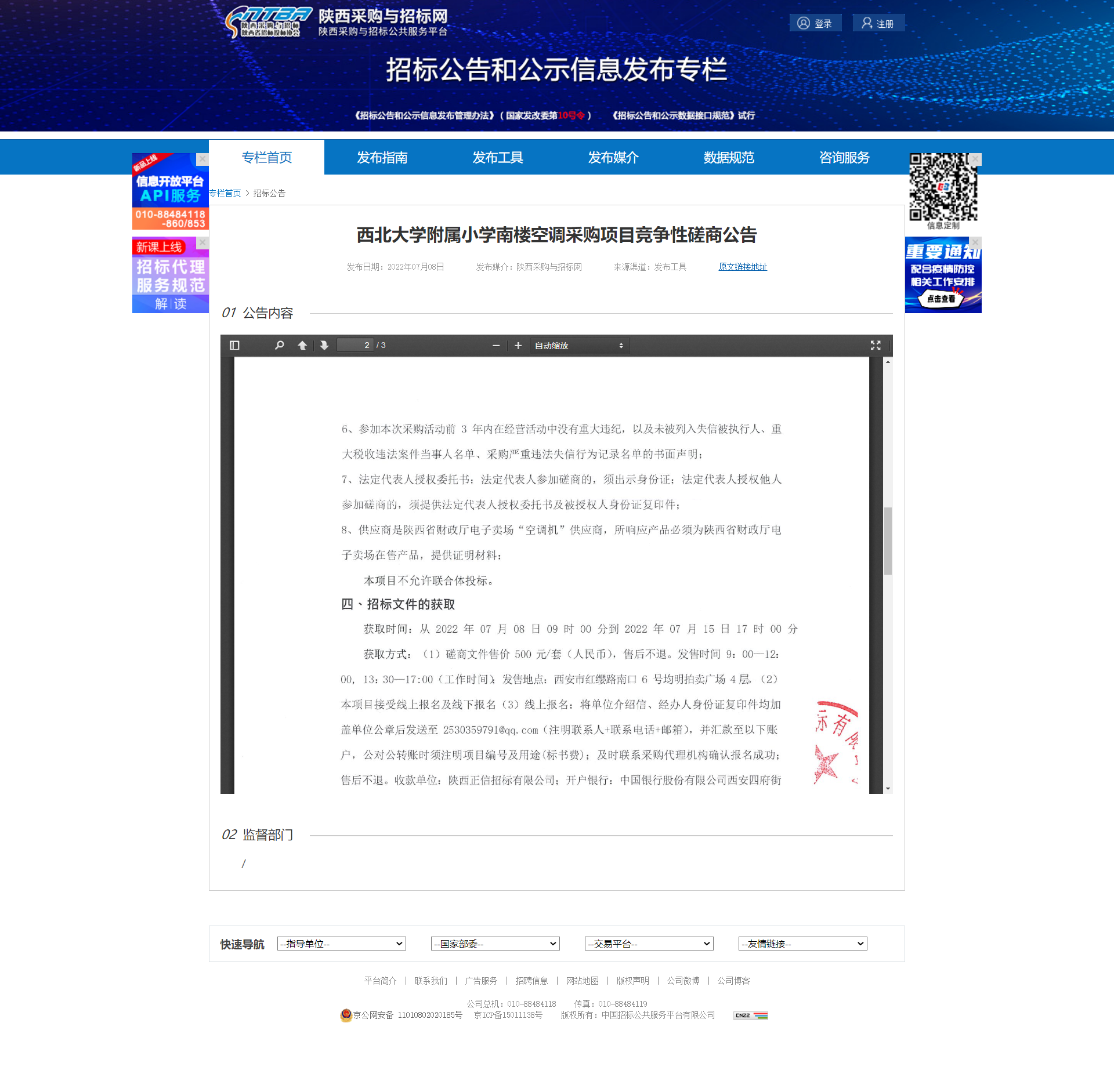 广发体育附属小学南楼空调采购项目竞争性磋商公告 作者: 编辑:薛利娟 时间:2022-07-08 原公告链接:http://bulletin.sntba.com/biddingBulletin/2022-07-08/445113.html