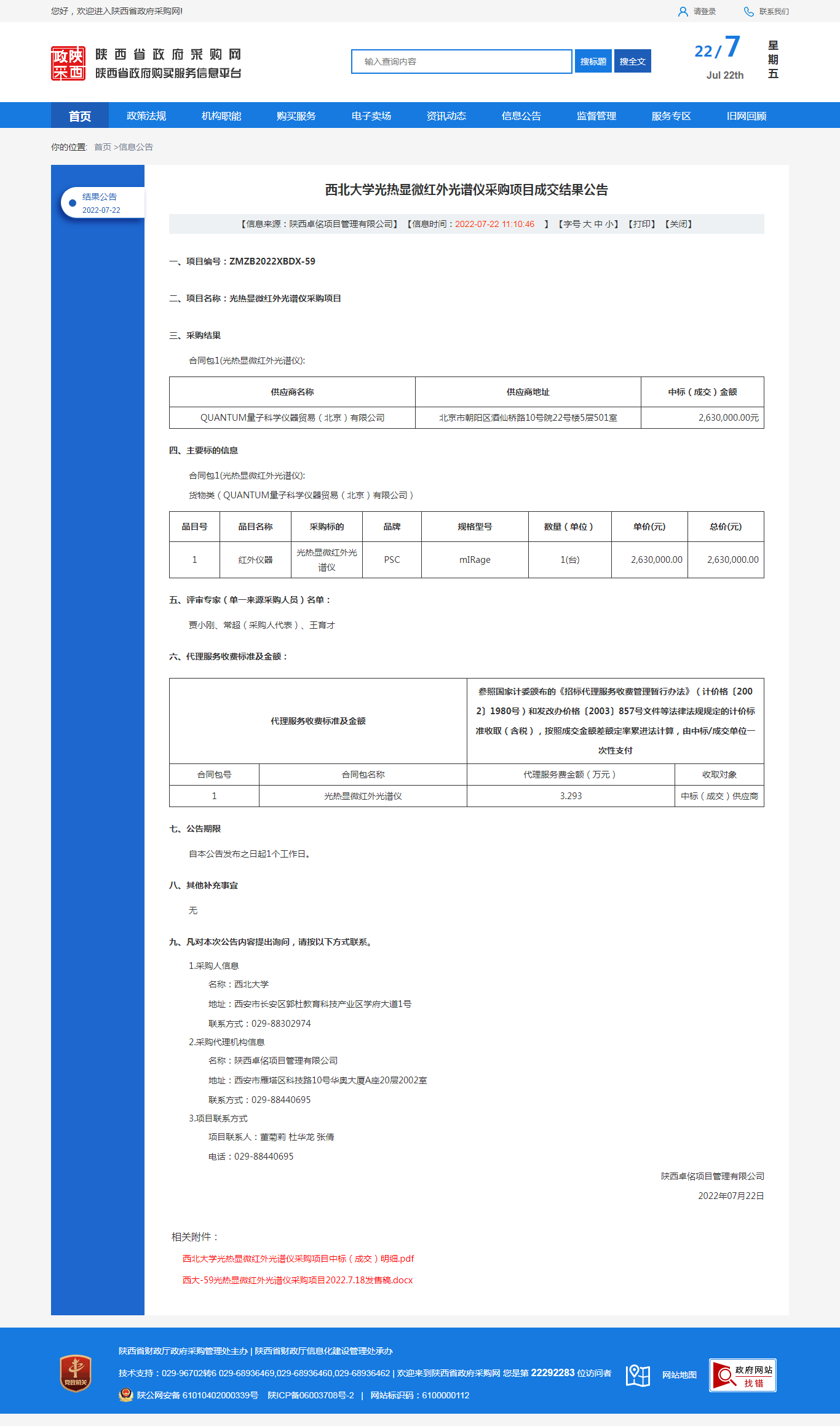 广发体育光热显微红外光谱仪采购项目成交结果公告