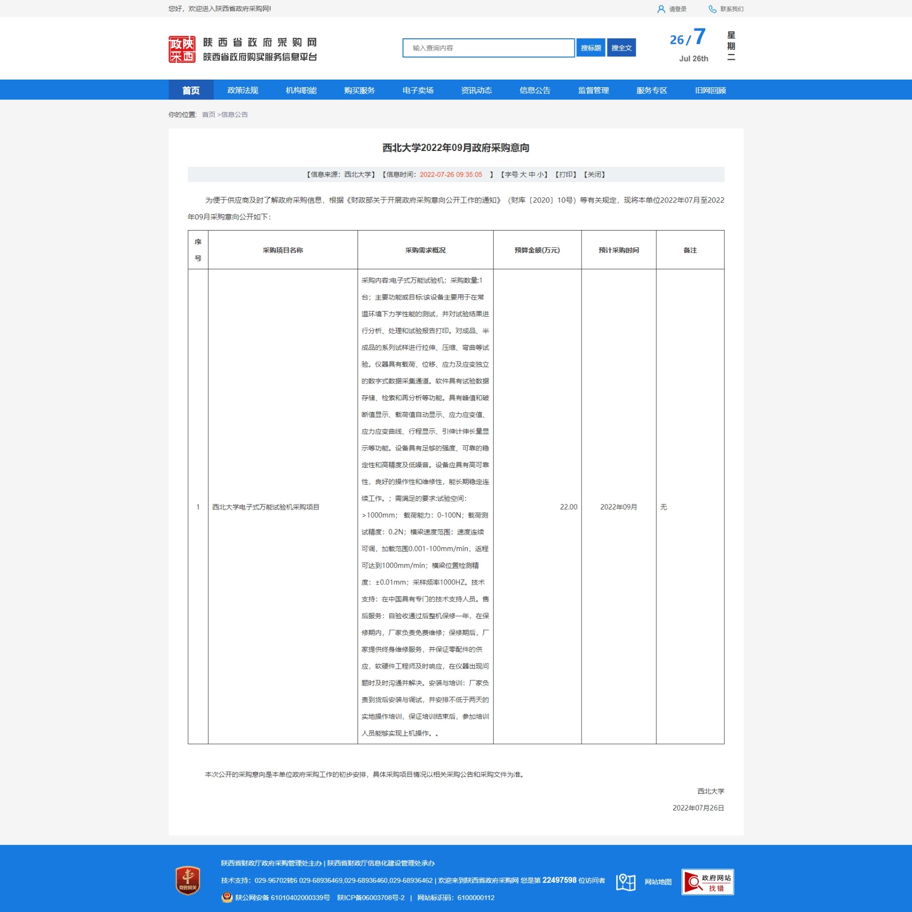原公告链接:http://www.ccgp-shaanxi.gov.cn/freecms/site/shaanxi/ggxx/info/2022/8a69c98382103559018210e050bc5cf5.html?noticeType=59&noticeId=9116edec-0c83-11ed-9a8e-08c0eb20c666