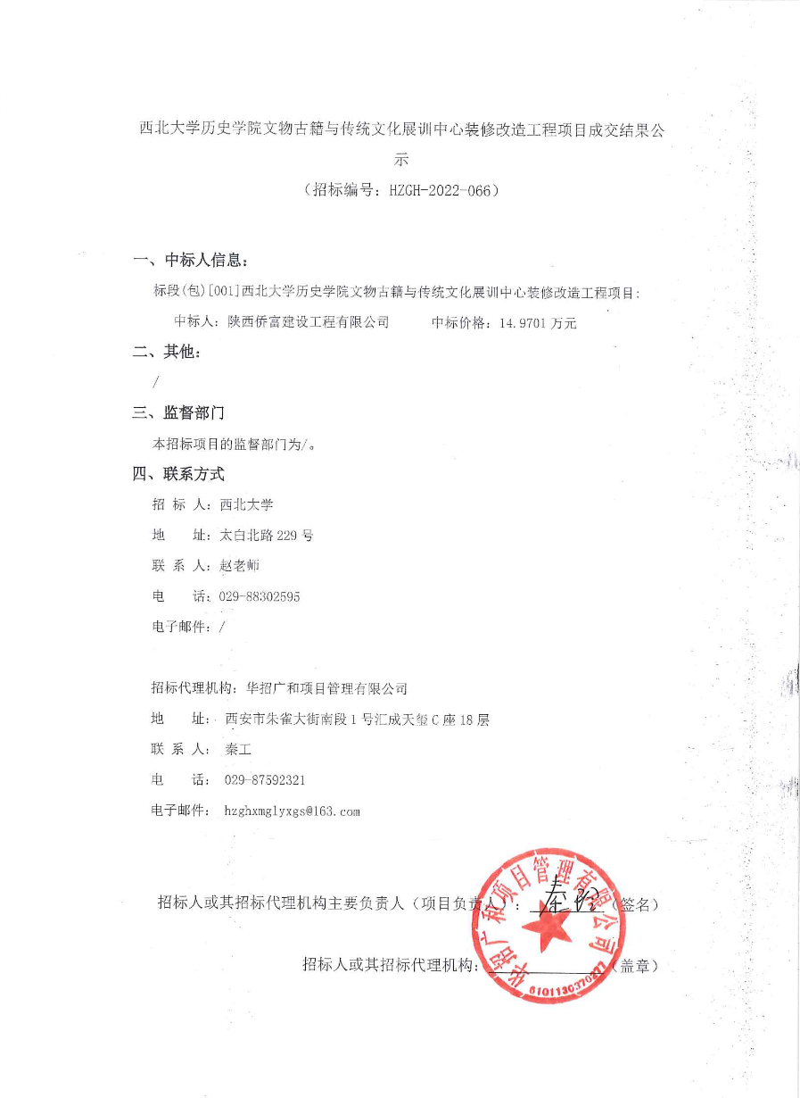 广发体育历史学院文物古籍与传统文化展训中心装修改造工程项目成交结果公示
