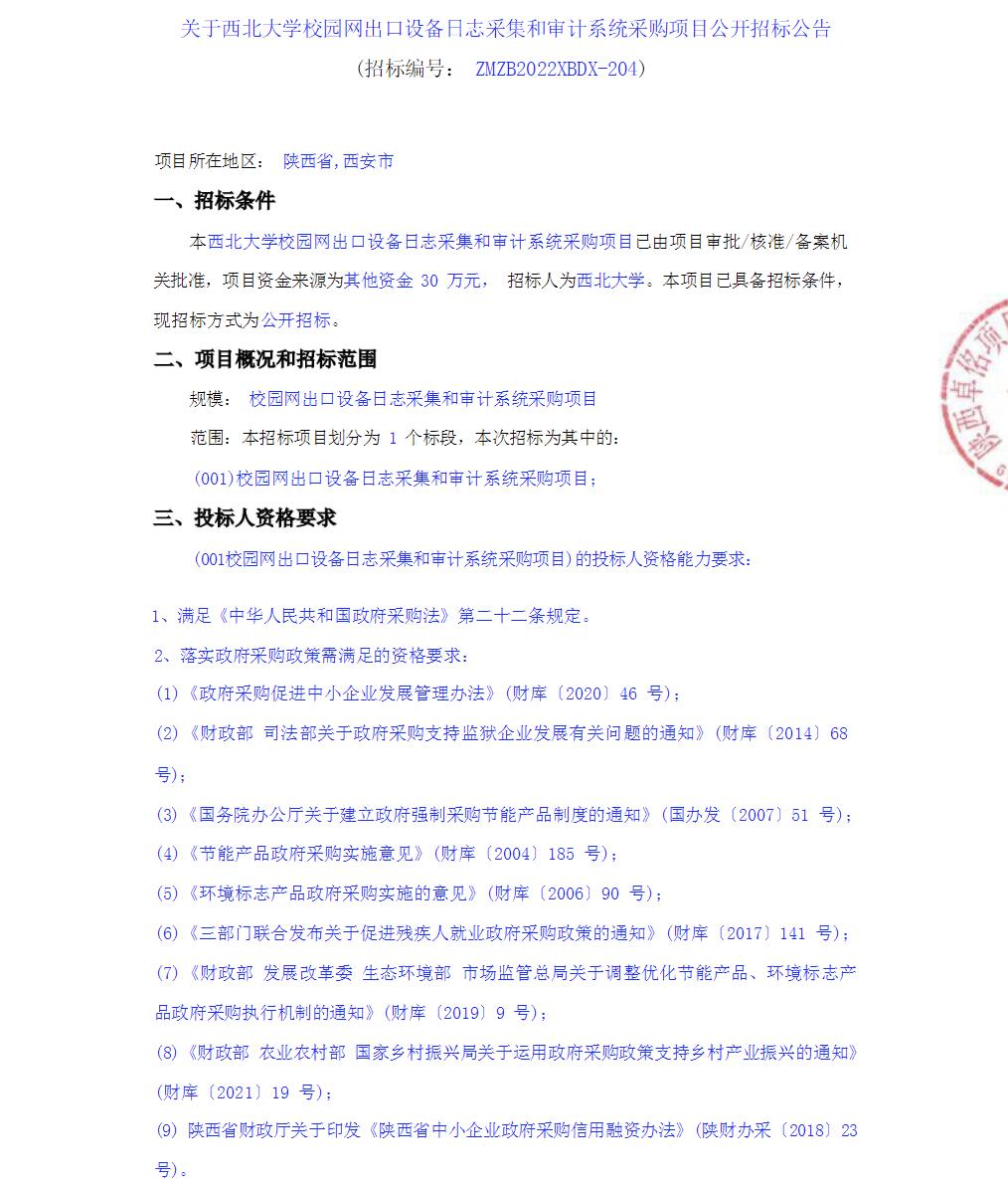 广发体育校园网出口设备日志采集和审计系统采购项目公开招标公告