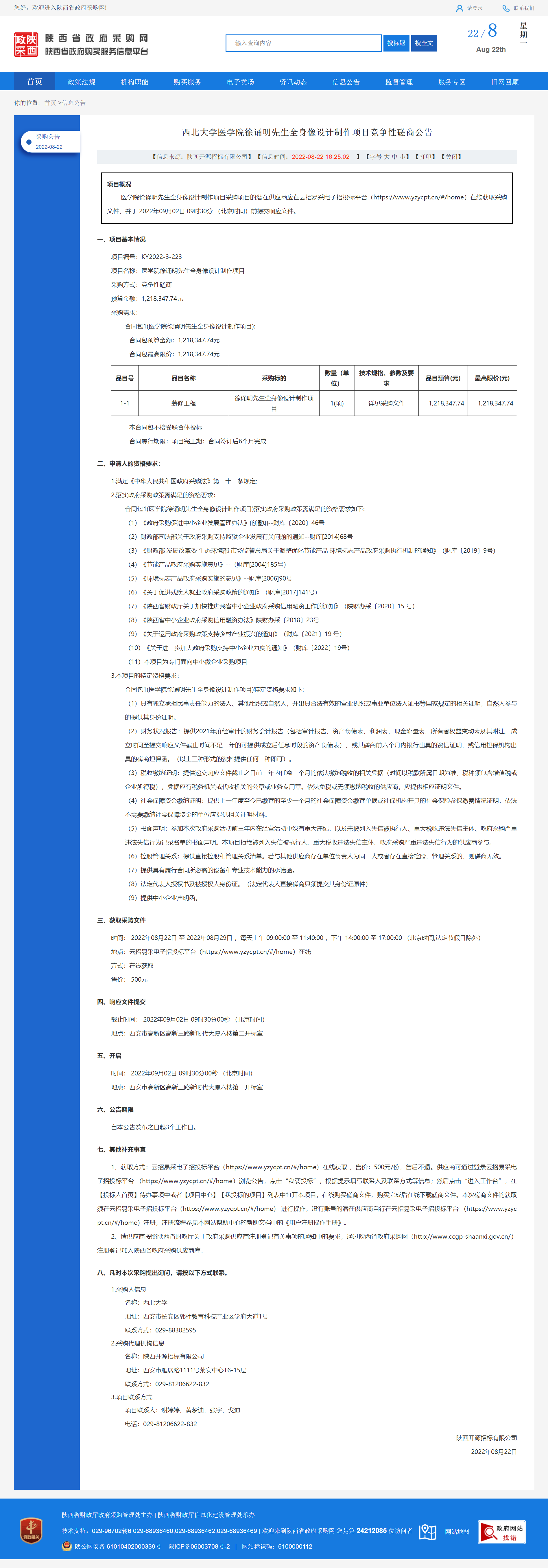 广发体育医学院徐诵明先生全身像设计制作项目竞争性磋商公告