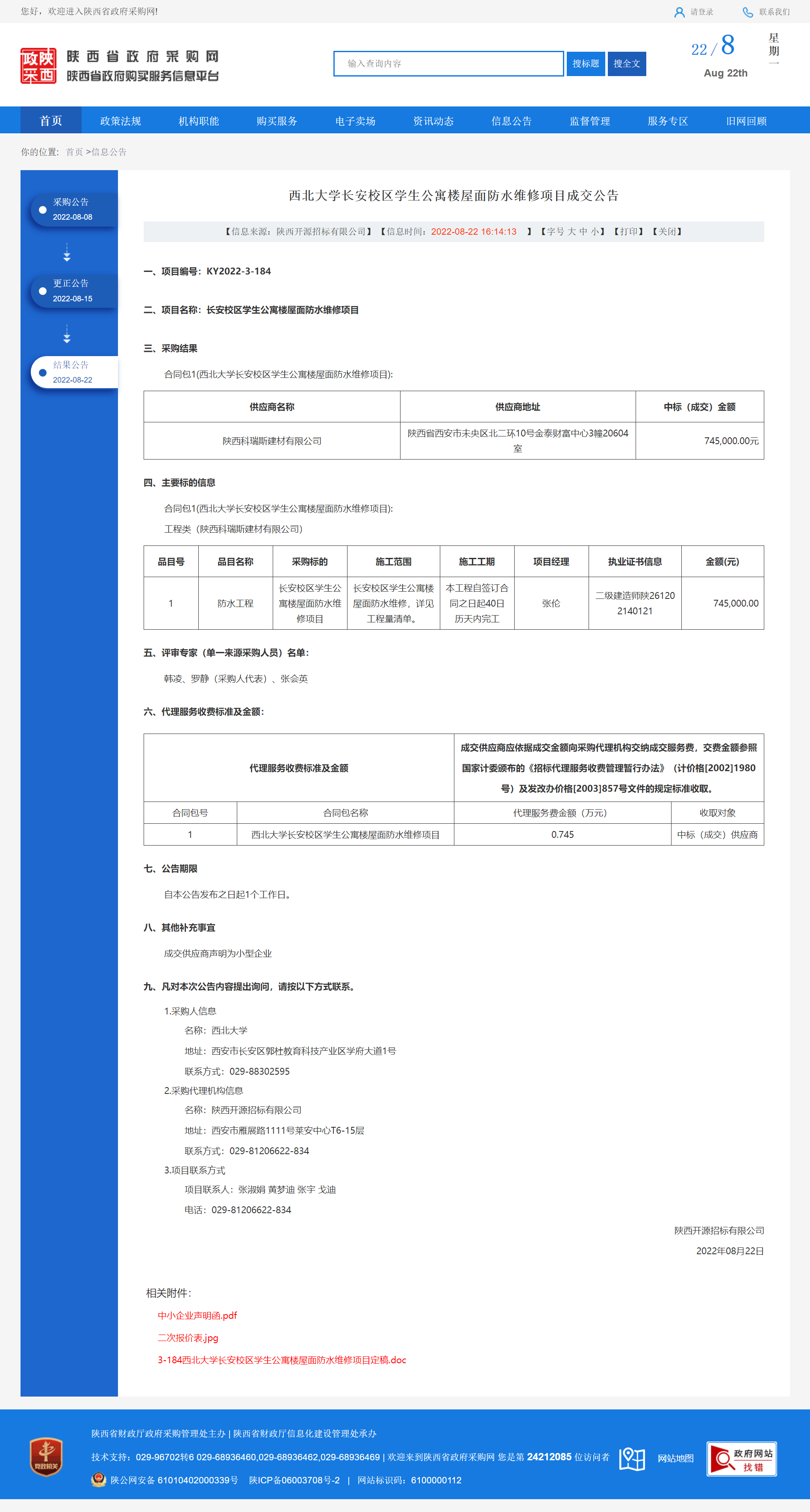 广发体育长安校区学生公寓楼屋面防水维修项目成交公告