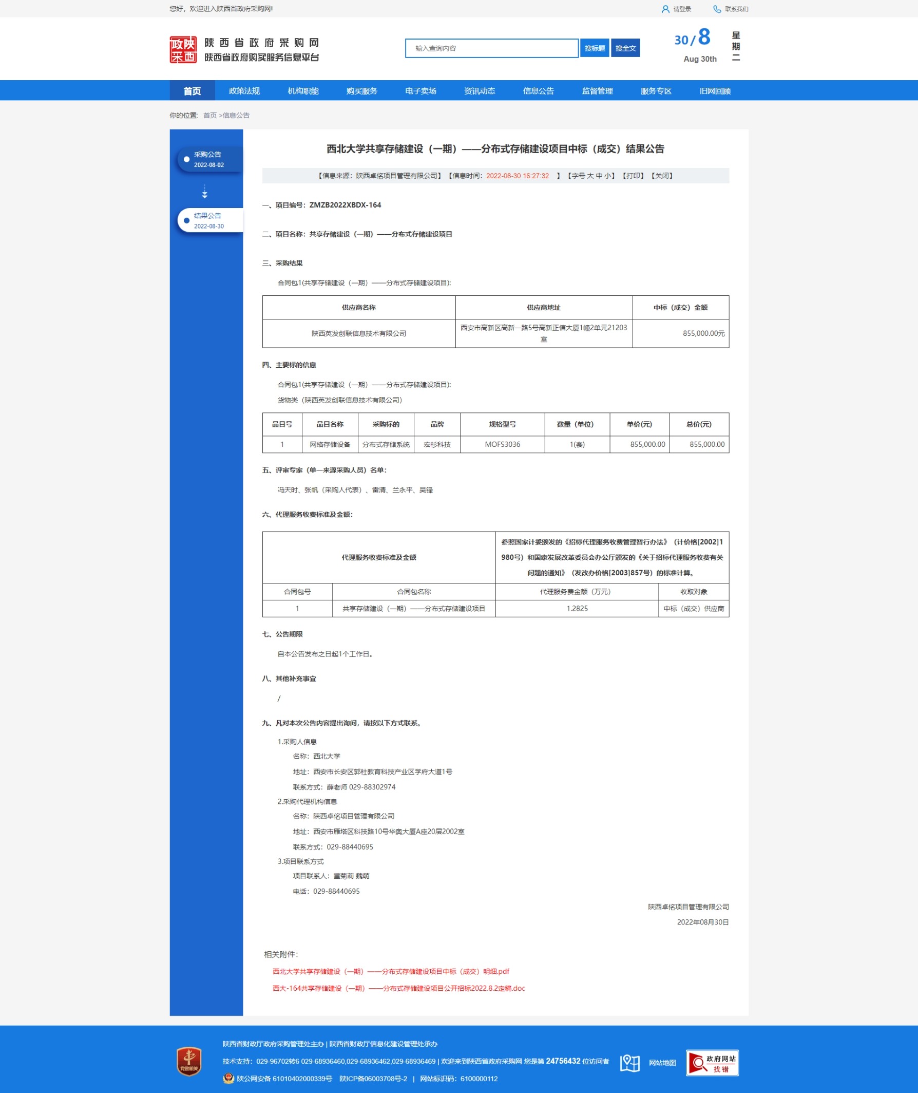 广发体育共享存储建设(一期)——分布式存储建设项目中标(成交)结果公告 作者: 编辑:采购与招标办公室 时间:2022-08-30 原公告链接:http://www.ccgp-shaanxi.gov.cn/freecms/site/shaanxi/ggxx/info/2022/8a69c59682a320a40182eda593c576ce.html?noticeType=001021¬iceId=1143663d-283e-11ed-9a8e-08c0eb20c666