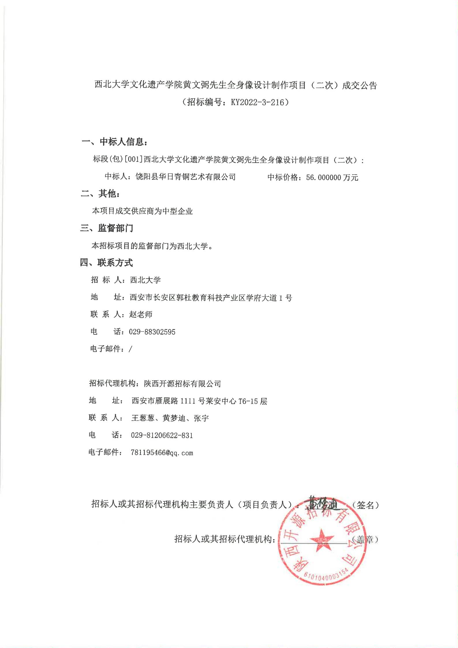 广发体育文化遗产学院黄文弼先生全身像设计制作项目(二次)成交公告