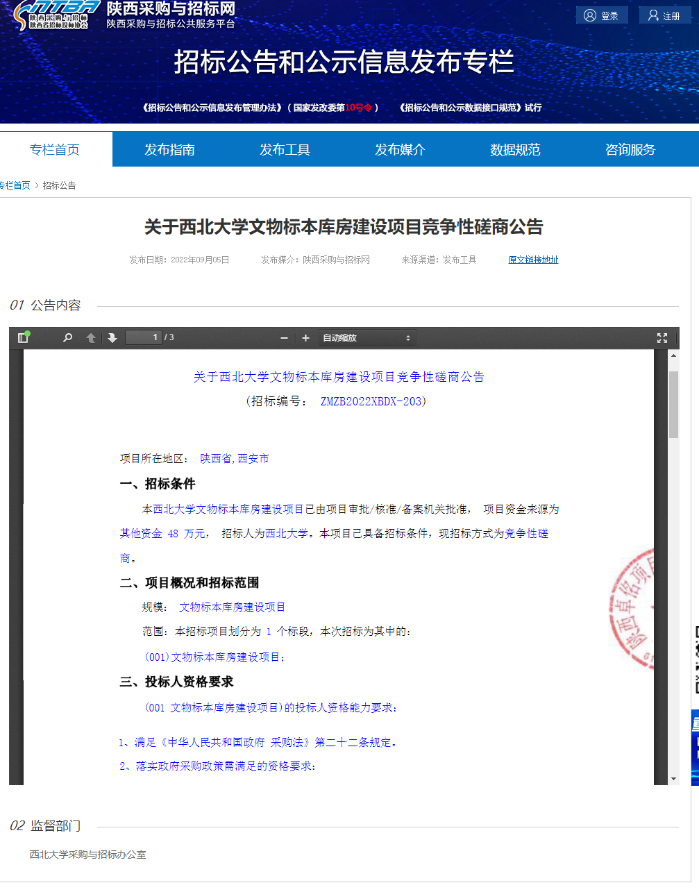 关于广发体育文物标本库房建设项目竞争性磋商公告 作者: 编辑:采购与招标办公室 时间:2022-09-06 原公告链接:http://bulletin.sntba.com/biddingBulletin/2022-09-05/470289.html