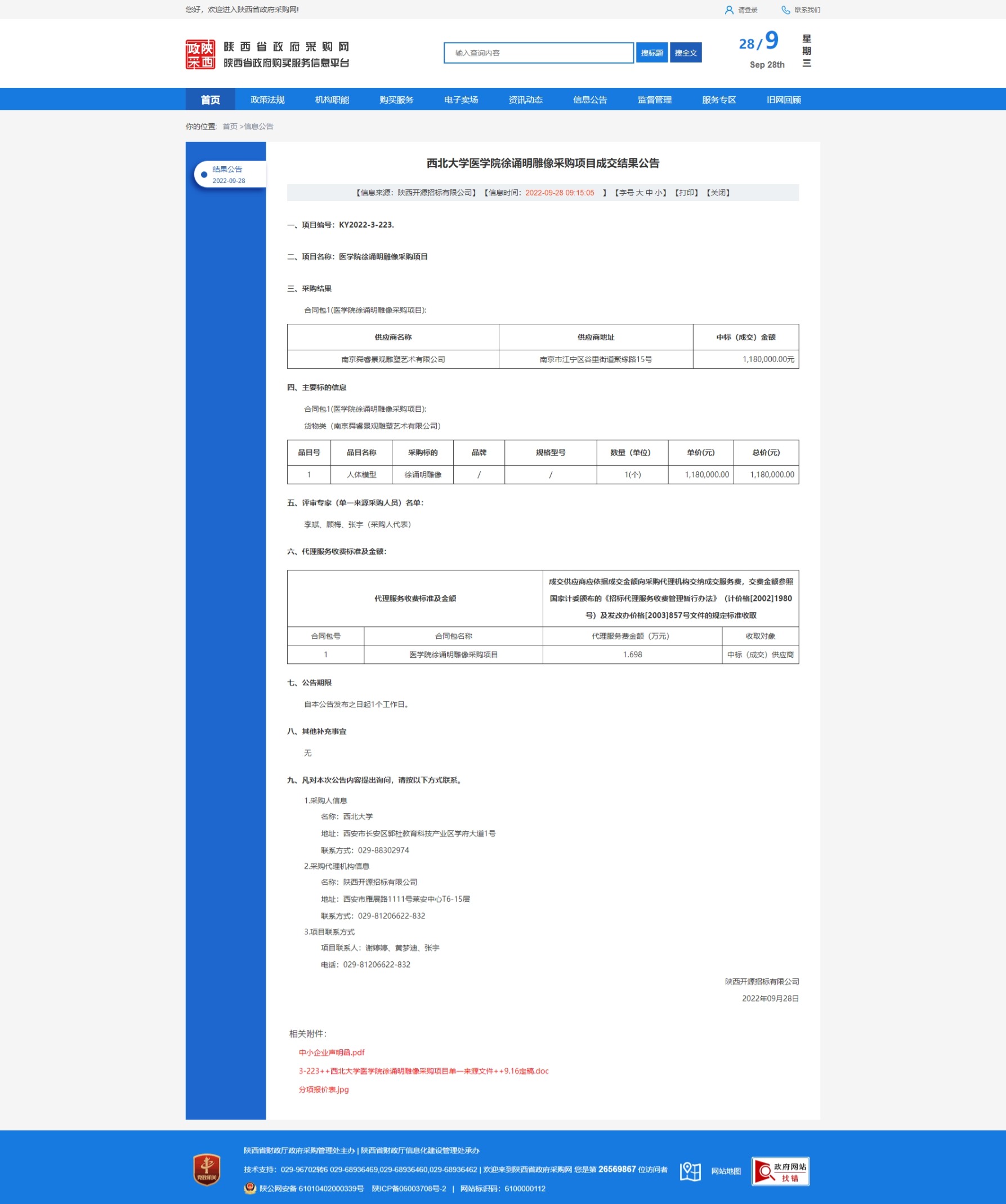 原公告链接:http://www.ccgp-shaanxi.gov.cn/freecms/site/shaanxi/ggxx/info/2022/8a69c59682a320a401837f62d0c80746.html?noticeType=001025&noticeId=85d816df-3ecb-11ed-9a8e-08c0eb20c666