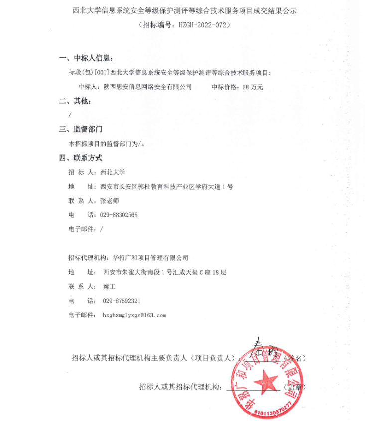 广发体育信息系统安全等级保护测评等综合技术服务项目成交结果公示