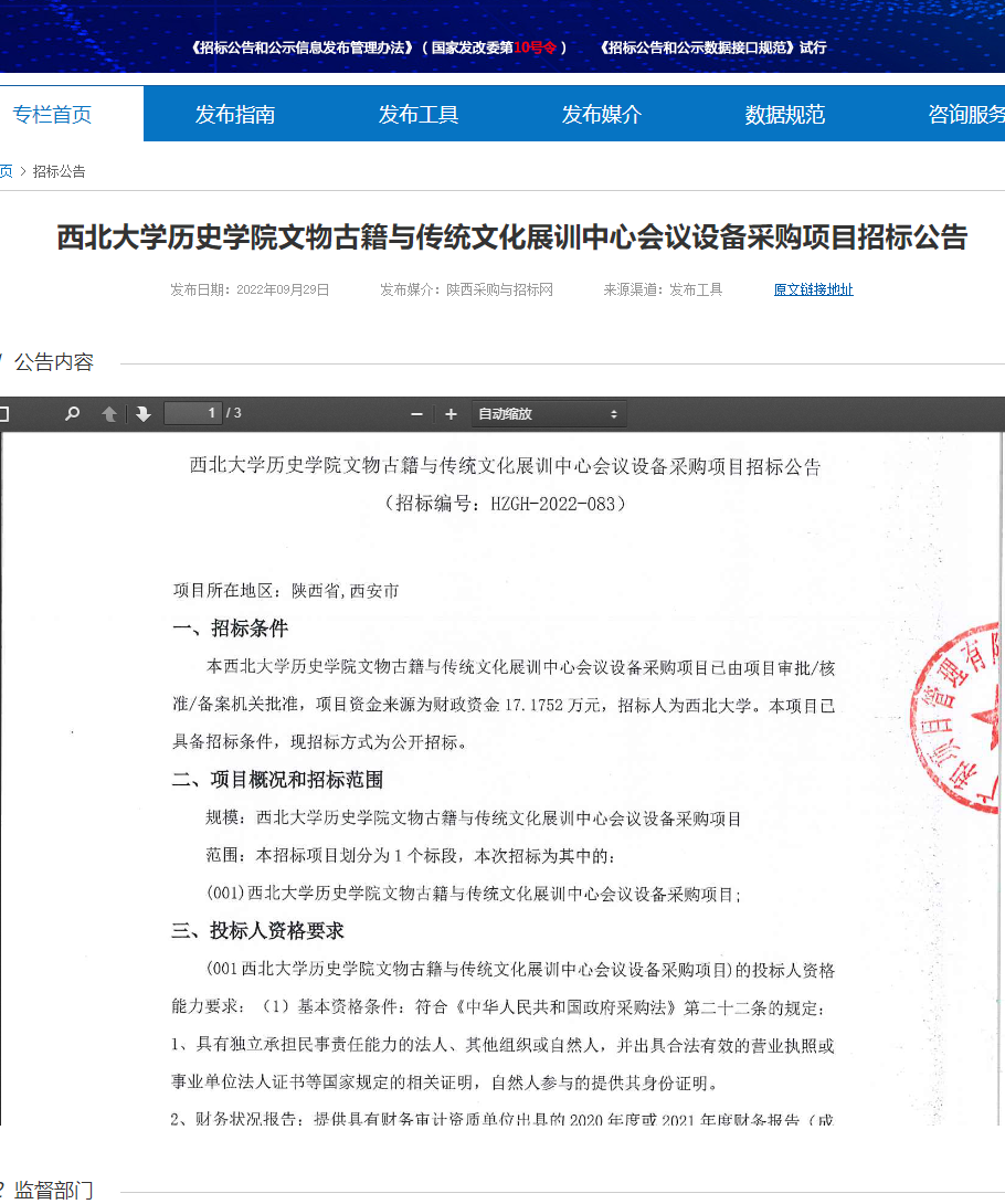 广发体育历史学院文物古籍与传统文化展训中心会议设备采购项目招标公告 作者: 编辑:广发体育历史学院文物古籍与传统文化展训中心会议设备采购项目招标公告 时间:2022-09-29 原公告链接:http://bulletin.sntba.com/biddingBulletin/2022-09-29/480759.html