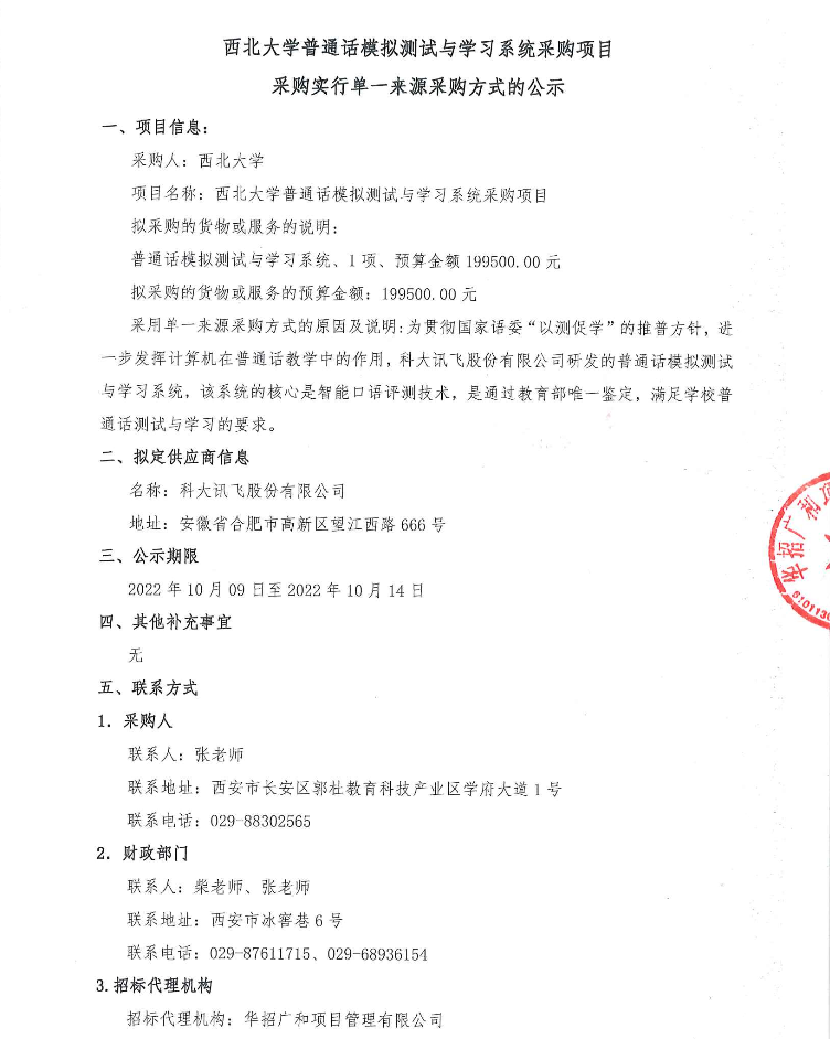 广发体育普通话模拟测试与学习系统采购项目采购实行单一来源采购方式的公示