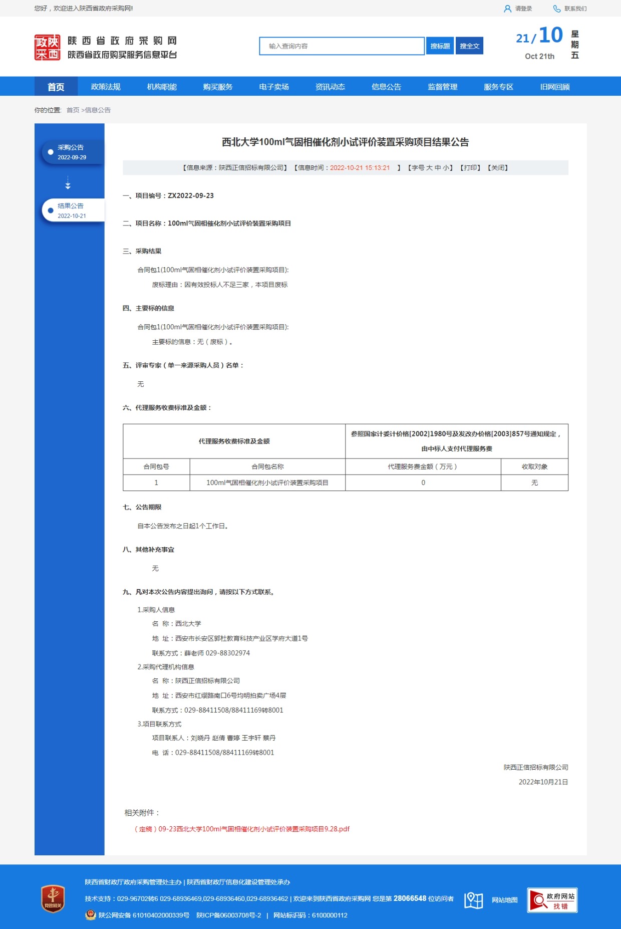 广发体育100ml气固相催化剂小试评价装置采购项目结果公告 作者: 编辑:采购与招标办公室 时间:2022-10-21 原公告链接:http://www.ccgp-shaanxi.gov.cn/freecms/site/shaanxi/ggxx/info/2022/8a69c29183b278190183f9504bd56da6.html?noticeType=001006¬iceId=6e4daf58-5110-11ed-9a8e-08c0eb20c666