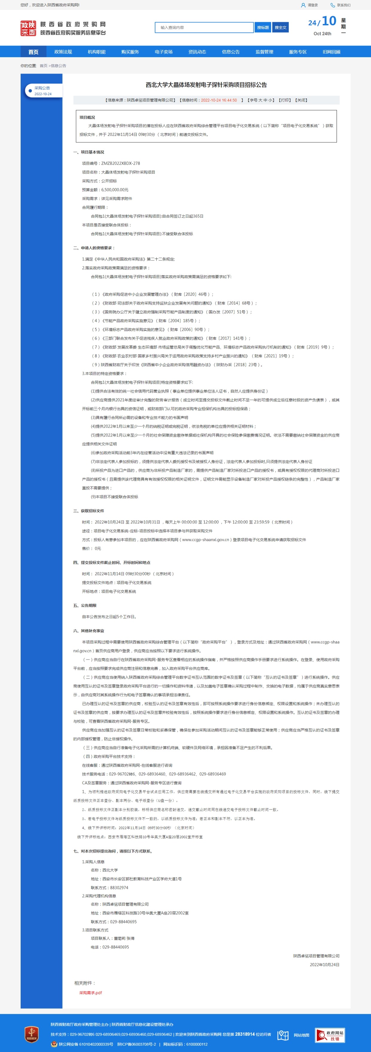 广发体育大晶体场发射电子探针采购项目招标公告 作者: 编辑:采购与招标办公室 时间:2022-10-24 原公告链接:http://www.ccgp-shaanxi.gov.cn/freecms/site/shaanxi/ggxx/info/2022/8a69c0398405ac32018408c2f6bb39d0.html?noticeType=001011¬iceId=b7d9a3a3-5378-11ed-9a8e-08c0eb20c666
