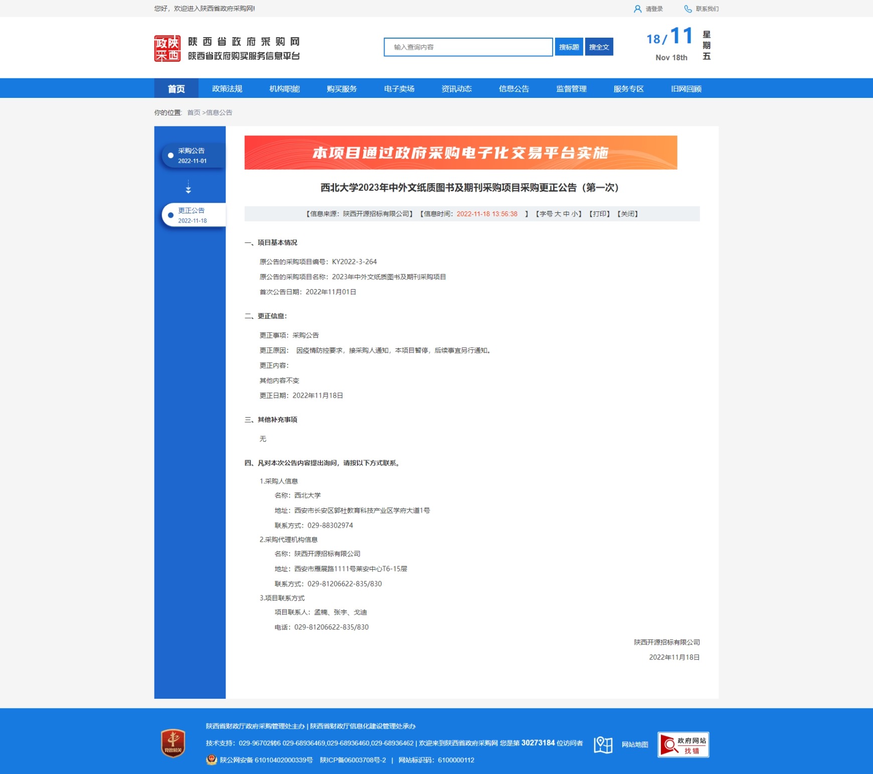 广发体育2023年中外文纸质图书及期刊采购项目采购更正公告(第一次) 作者: 编辑:采购与招标办公室 时间:2022-11-18 原公告链接:http://www.ccgp-shaanxi.gov.cn/freecms/site/shaanxi/ggxx/info/2022/8a69c8558405a9700184889f96e17106.html?noticeType=001031¬iceId=6916829e-6706-11ed-9a8e-08c0eb20c666