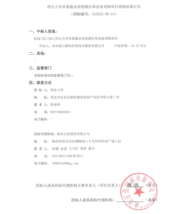 广发体育多参数水质检测仪等设备采购项目采购结果公告