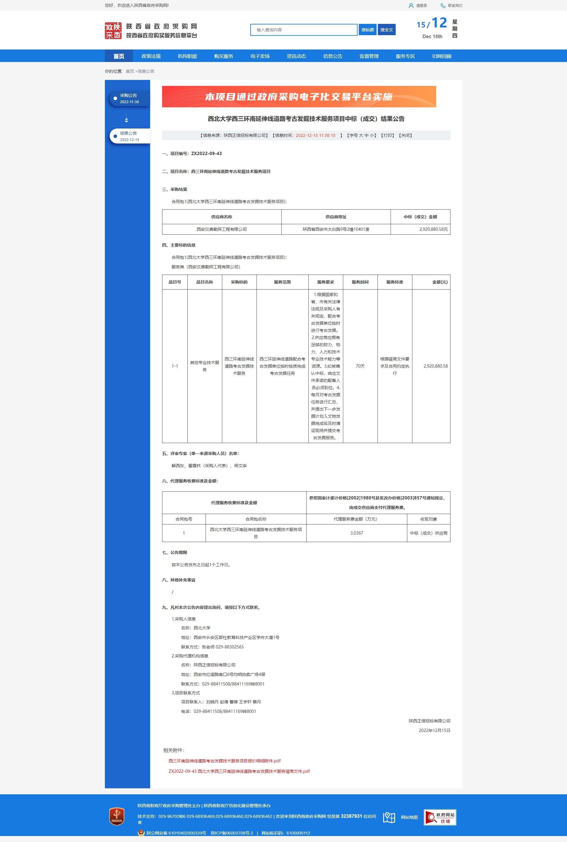 广发体育西三环南延伸线道路考古发掘技术服务项目中标(成交)结果公告