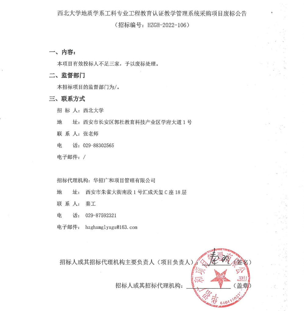 广发体育地质学系工科专业工程教育认证教学管理系统采购项目废标公告