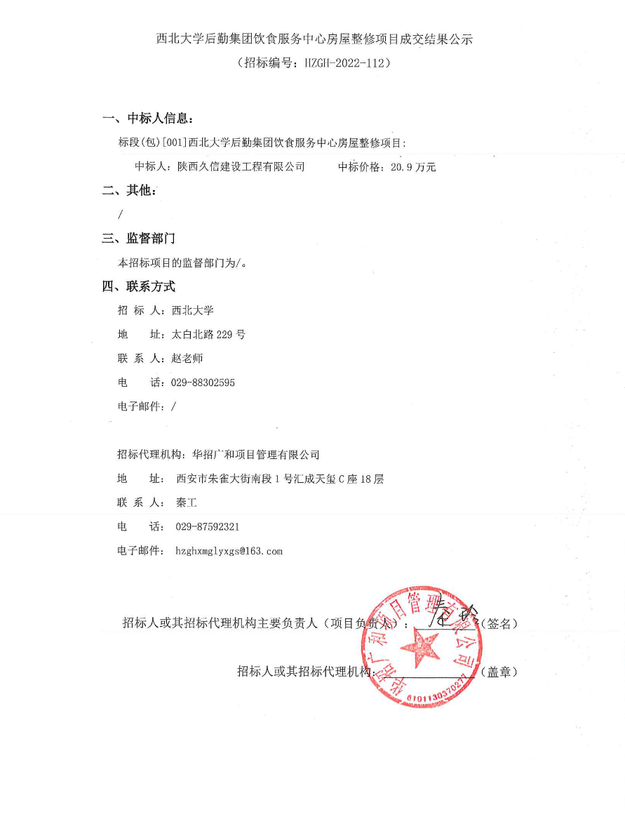 广发体育后勤集团饮食服务中心房屋整修项目成交结果公示