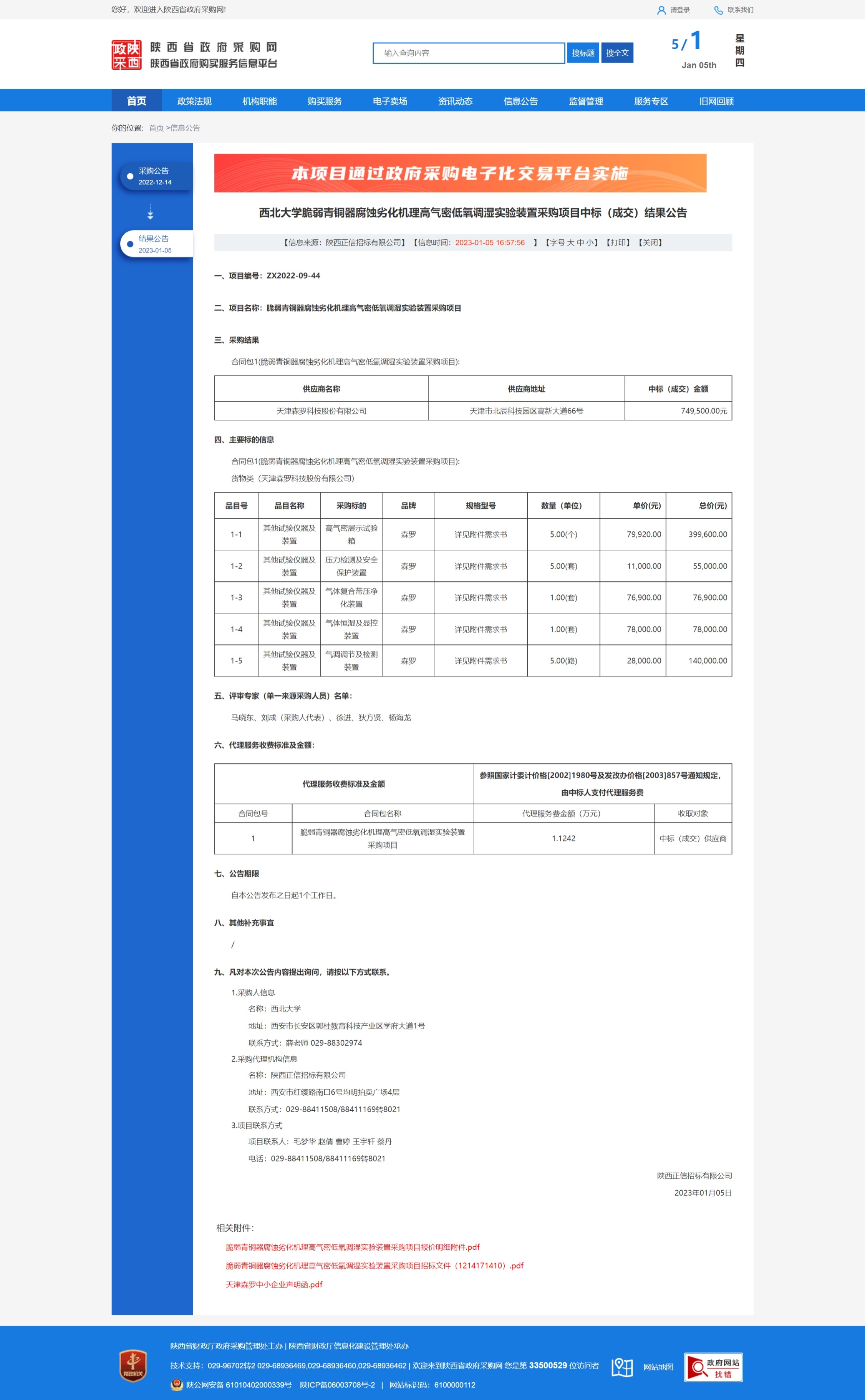 广发体育脆弱青铜器腐蚀劣化机理高气密低氧调湿实验装置采购项目中标(成交)结果公告 作者: 编辑:采购与招标办公室 时间:2023-01-05 原公告链接:http://www.ccgp-shaanxi.gov.cn/freecms/site/shaanxi/ggxx/info/2023/8a69c054852dbea601858077ea453bb3.html?noticeType=001021¬iceId=cbc8e5cb-8cd7-11ed-9a8e-08c0eb20c666