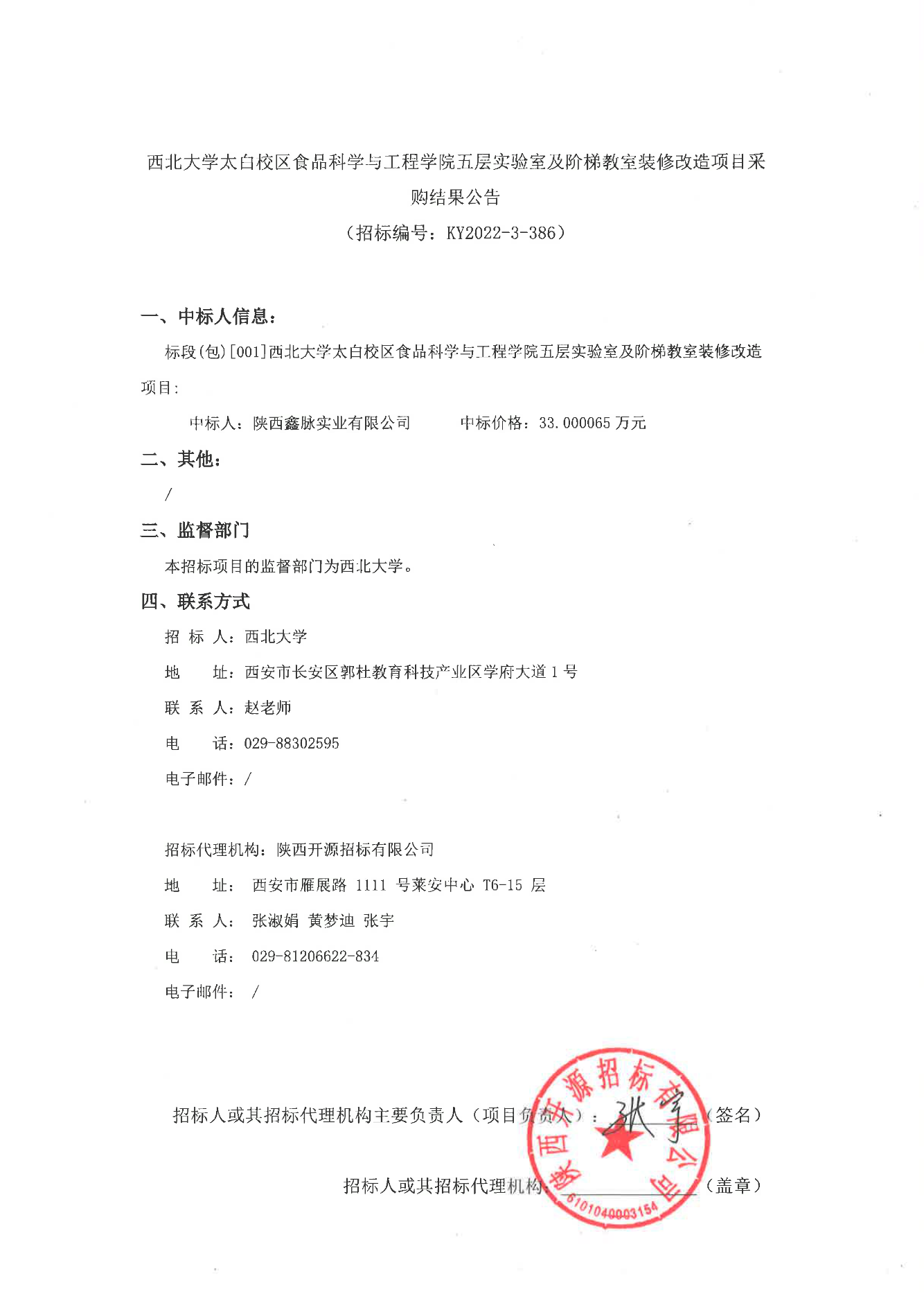 广发体育太白校区食品科学与工程学院五层实验室及阶梯教室装修改造项目采购结果公告