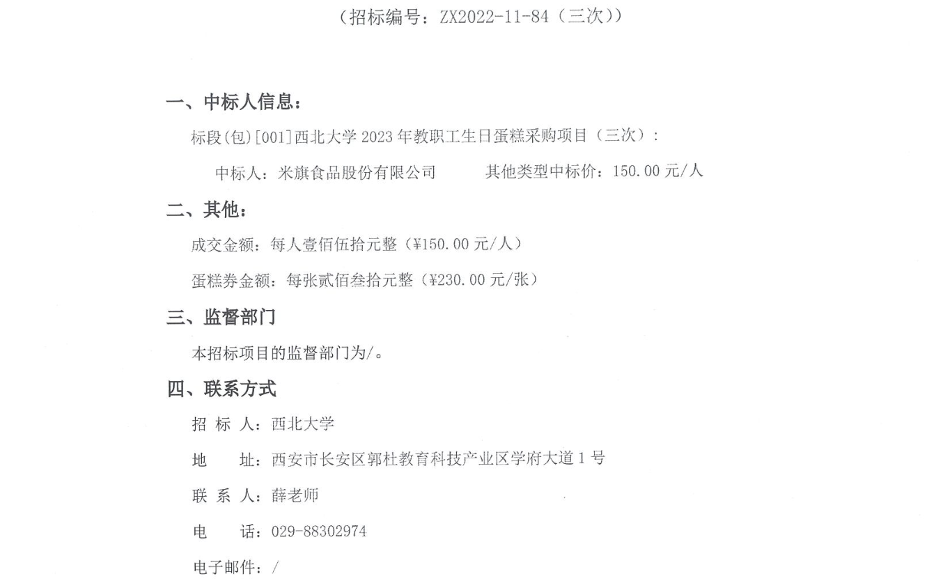 广发体育2023年教职工生日蛋糕采购项目(三次)采购结果公告 作者: 编辑:采购与招标办公室 时间:2023-01-11 原公告链接:http://bulletin.sntba.com/resultBulletin/2023-01-11/520362.html