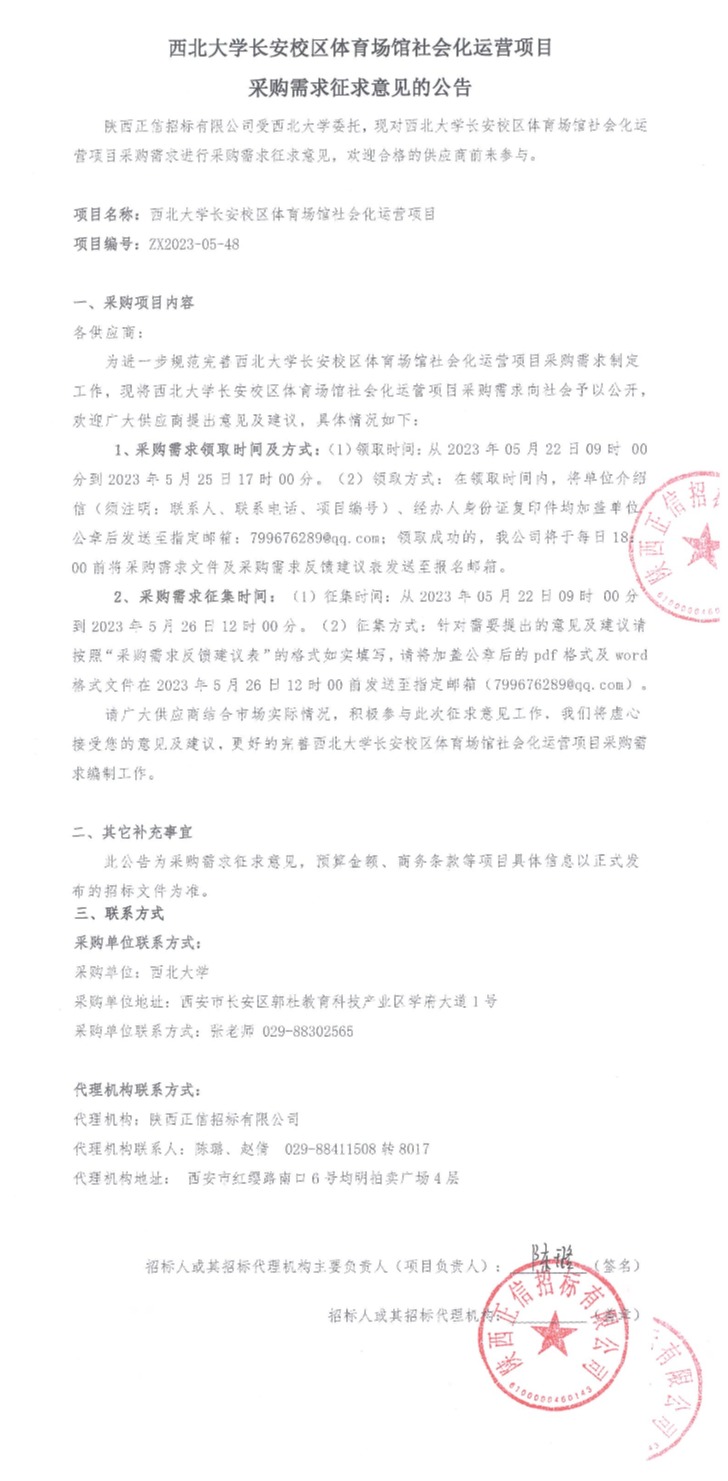 广发体育长安校区体育场馆社会化运营项目采购需求征求意见的公告