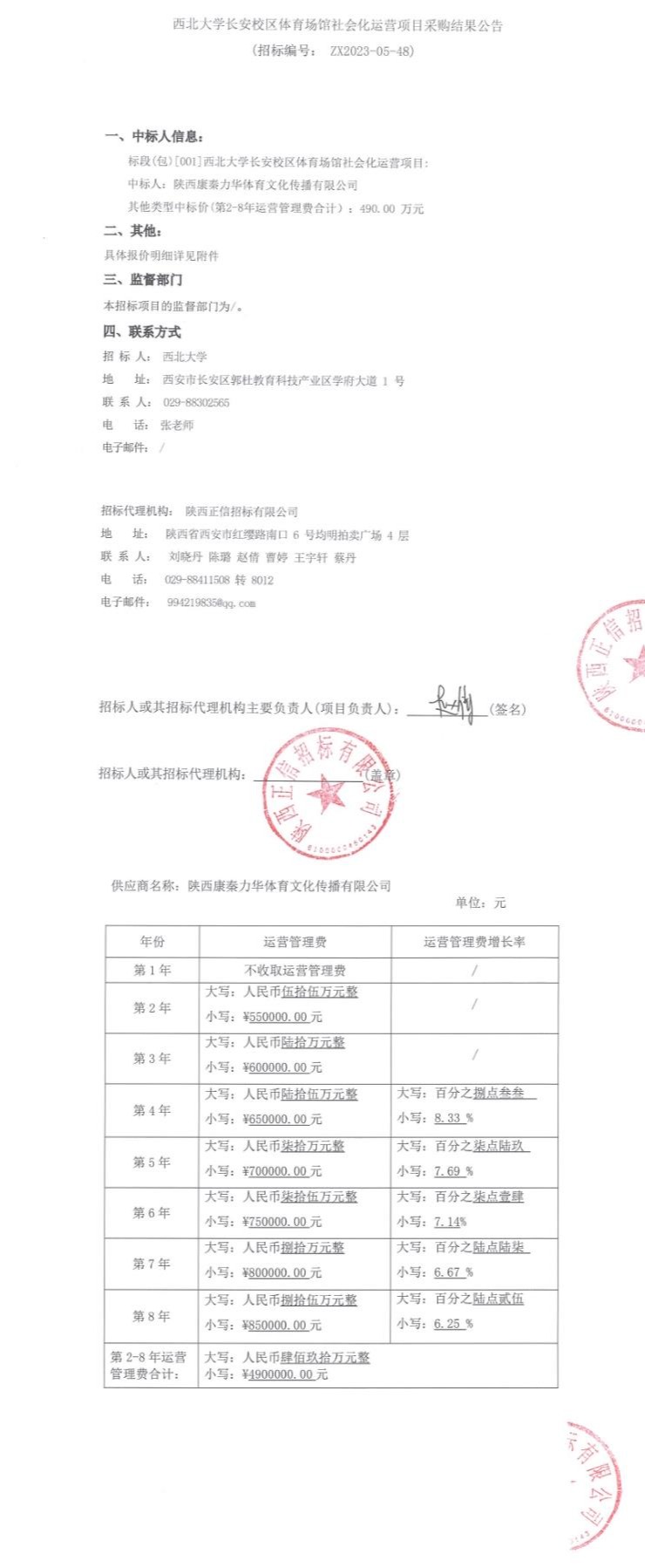 广发体育长安校区体育场馆社会化运营项目采购结果公告