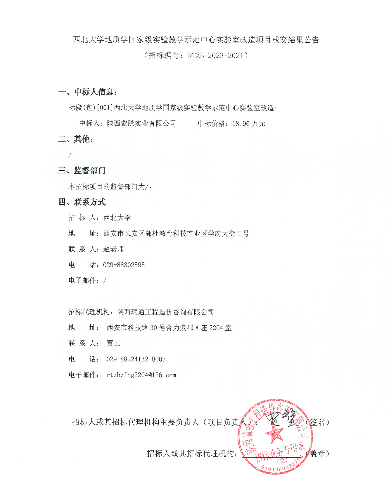 广发体育地质学国家级实验教学示范中心实验室改造项目成交结果公告