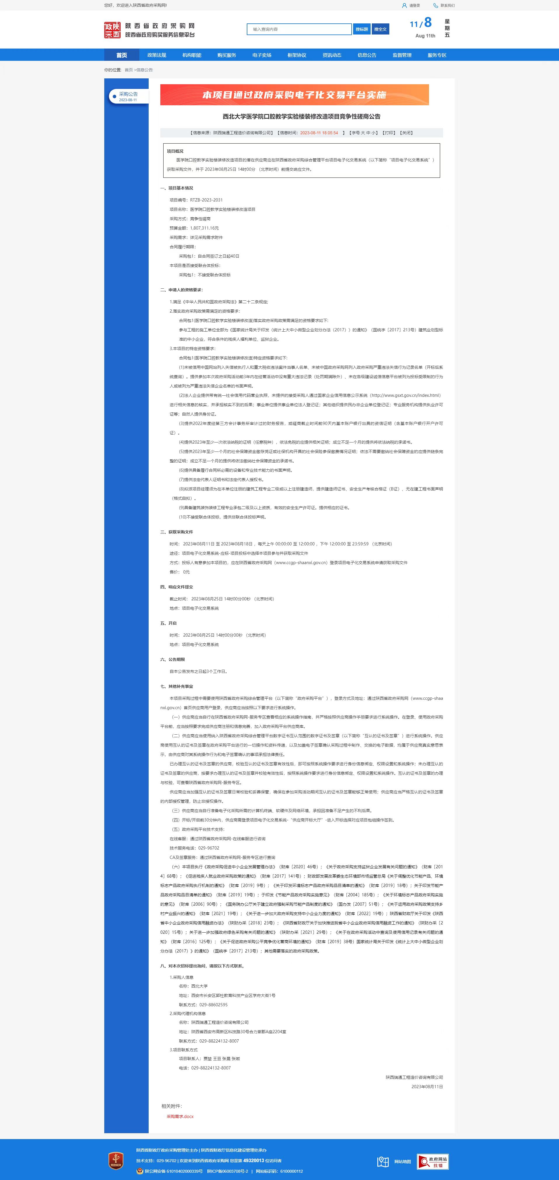 广发体育医学院口腔教学实验楼装修改造项目采购更正公告(第一次)