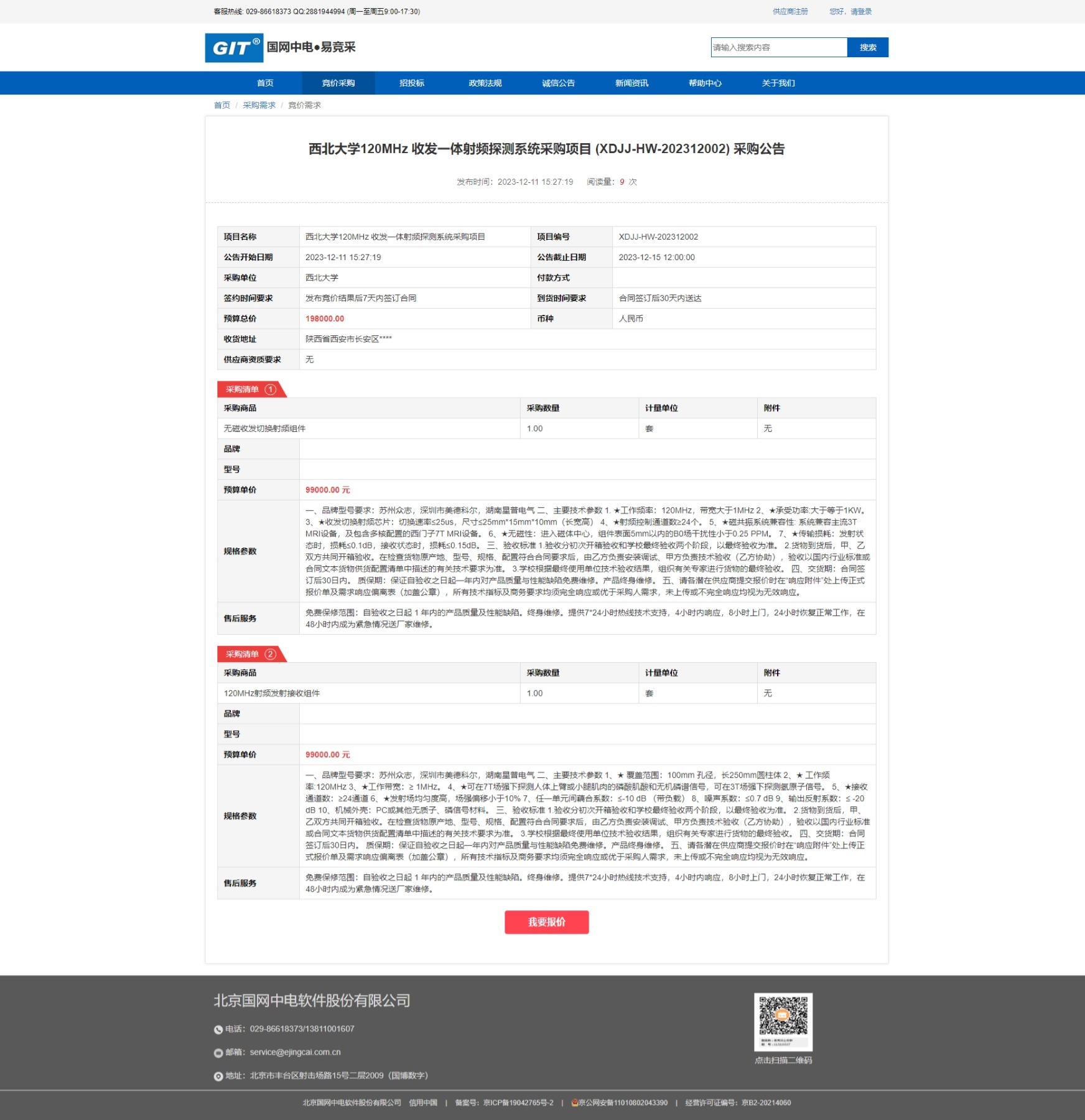 广发体育120MHz 收发一体射频探测系统采购项目 (XDJJ-HW-202312002) 采购公告 作者: 编辑: 时间:2023-12-12 原公告链接:https://www.ejingcai.com.cn/site/bidding/detail/7715