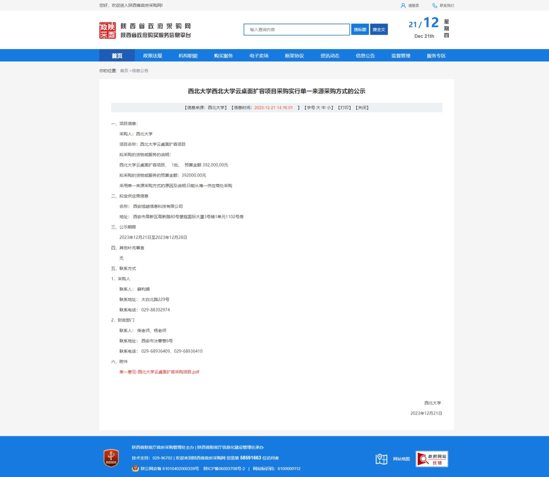广发体育云桌面扩容项目采购实行单一来源采购方式的公示 作者: 编辑:采购与招标办公室 时间:2023-12-21 原公告链接:http://www.ccgp-shaanxi.gov.cn/freecms/site/shaanxi/ggxx/info/2023/8a69c16c8c86bcea018c8afd06910a33.html?noticeType=001051¬iceId=dae76602-9fc9-11ee-9a8e-08c0eb20c666