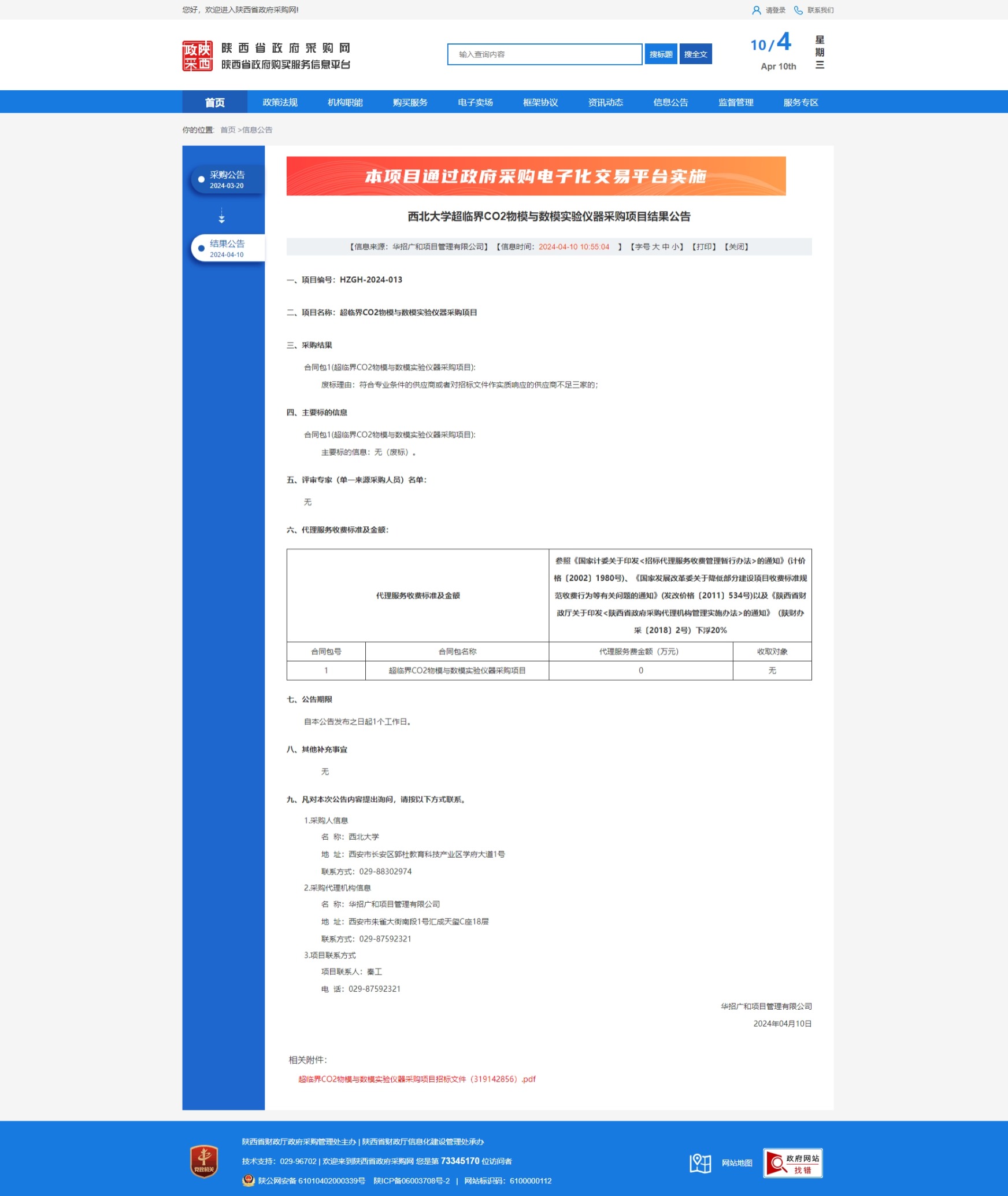 广发体育超临界CO2物模与数模实验仪器采购项目结果公告 作者: 编辑:采购与招标办公室 时间:2024-04-10 原公告链接:https://www.ccgp-shaanxi.gov.cn/freecms/site/shaanxi/ggxx/info/2024/8a69c2f28e4640e0018ec5a1aada287b.html?noticeType=001006¬iceId=e75e67c6-f6e6-11ee-b8b6-08c0eb20c666
