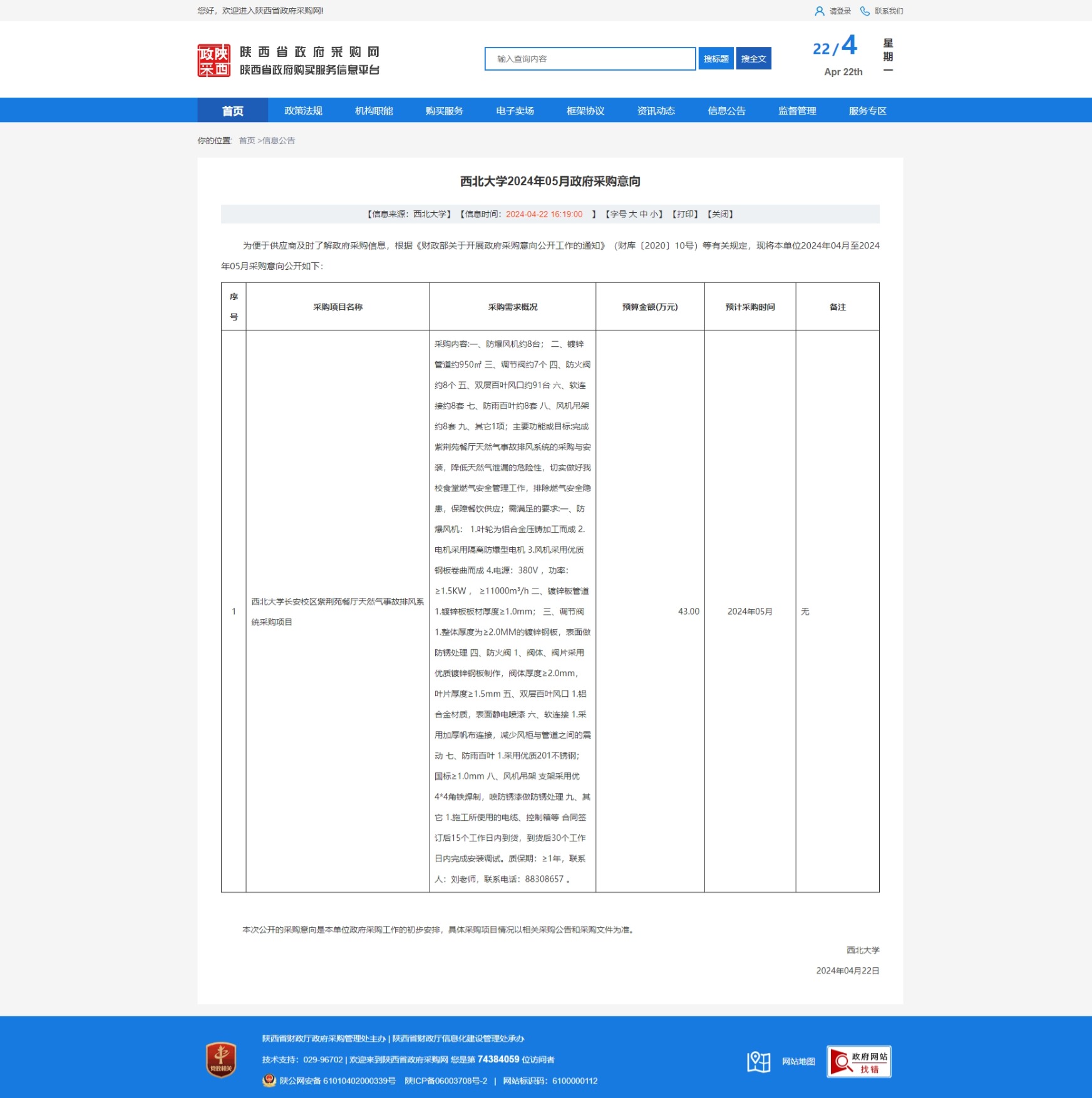 广发体育2024年05月政府采购意向 作者: 编辑:采购与招标办公室 时间:2024-04-22 原公告链接:https://www.ccgp-shaanxi.gov.cn/freecms/site/shaanxi/ggxx/info/2024/8a69c2f18edfb8e9018f034a758507c8.html?noticeType=59¬iceId=6c449ff0-0083-11ef-b8b6-08c0eb20c666