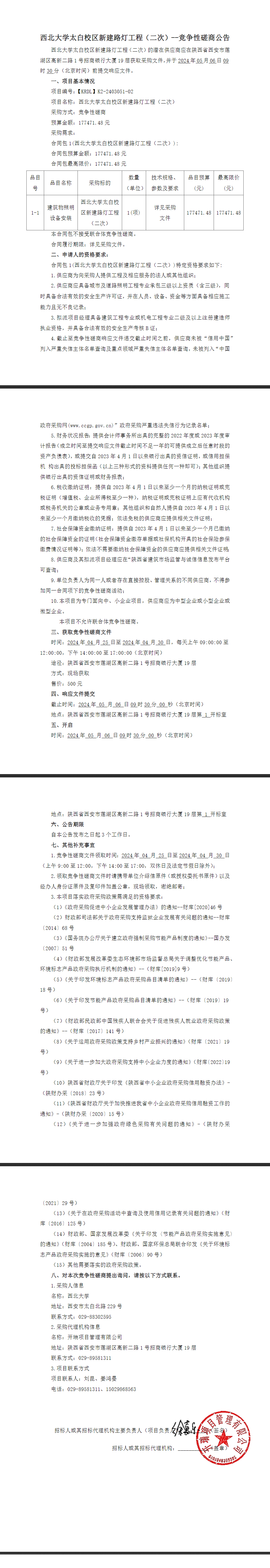 广发体育太白校区新建路灯工程(二次)竞争性磋商公告